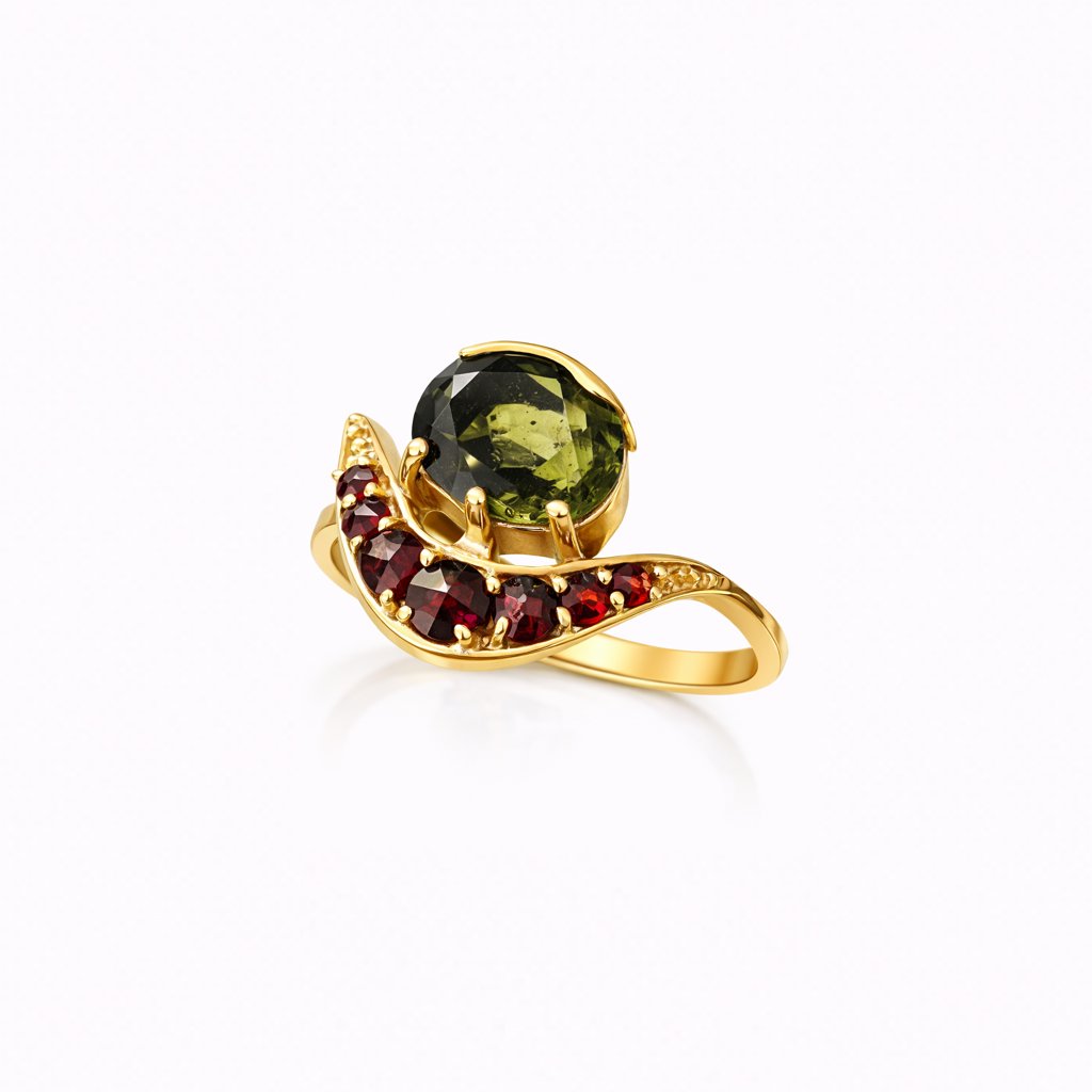 Zlatý prsten s vltavínem a granáty 2000347810001 2000347800002