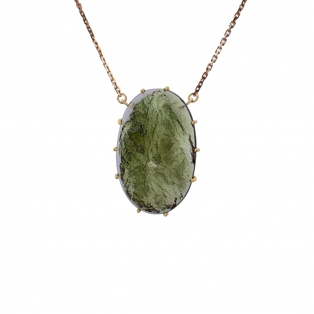 Exklusivní zlatý náhrdelník s vltavínem, polobrus P23 0020