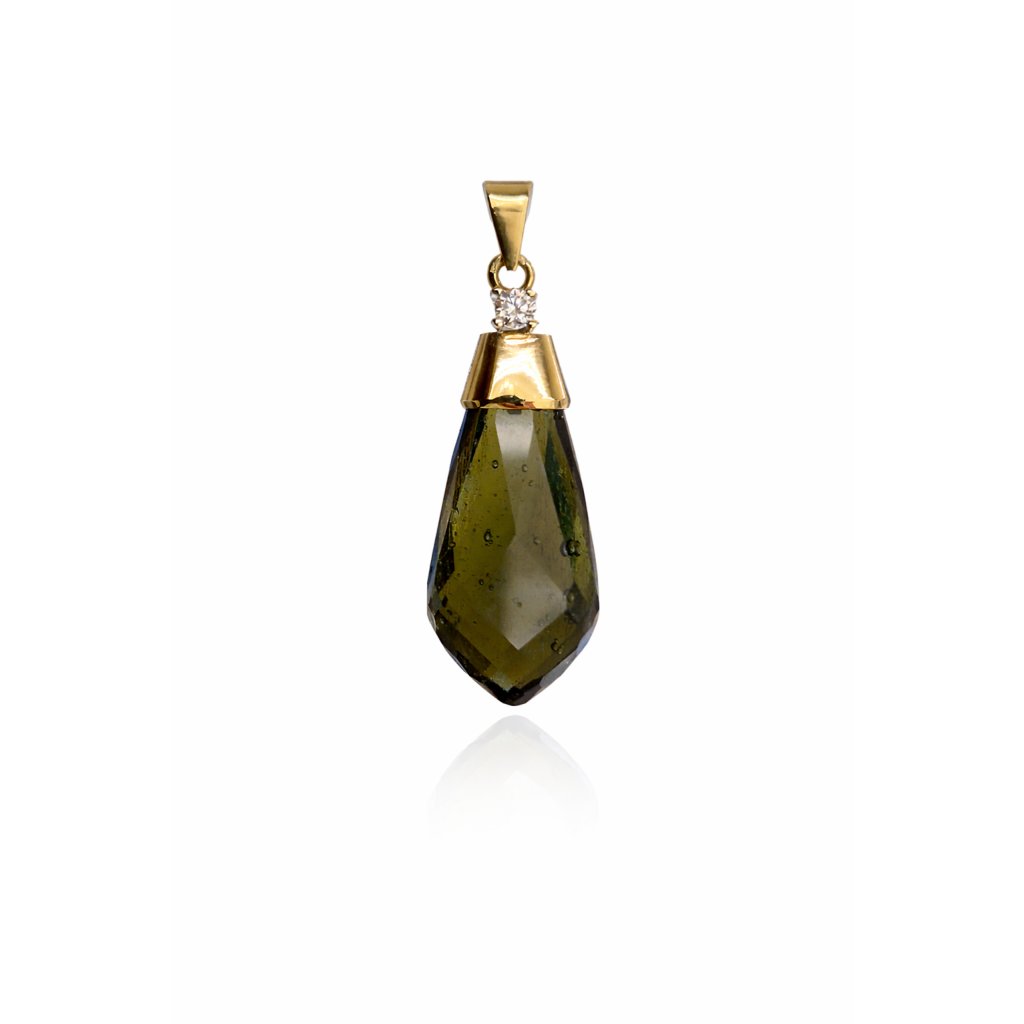 Exklusivní zlatý přívěsek s vltavínem a diamantem P21 0089