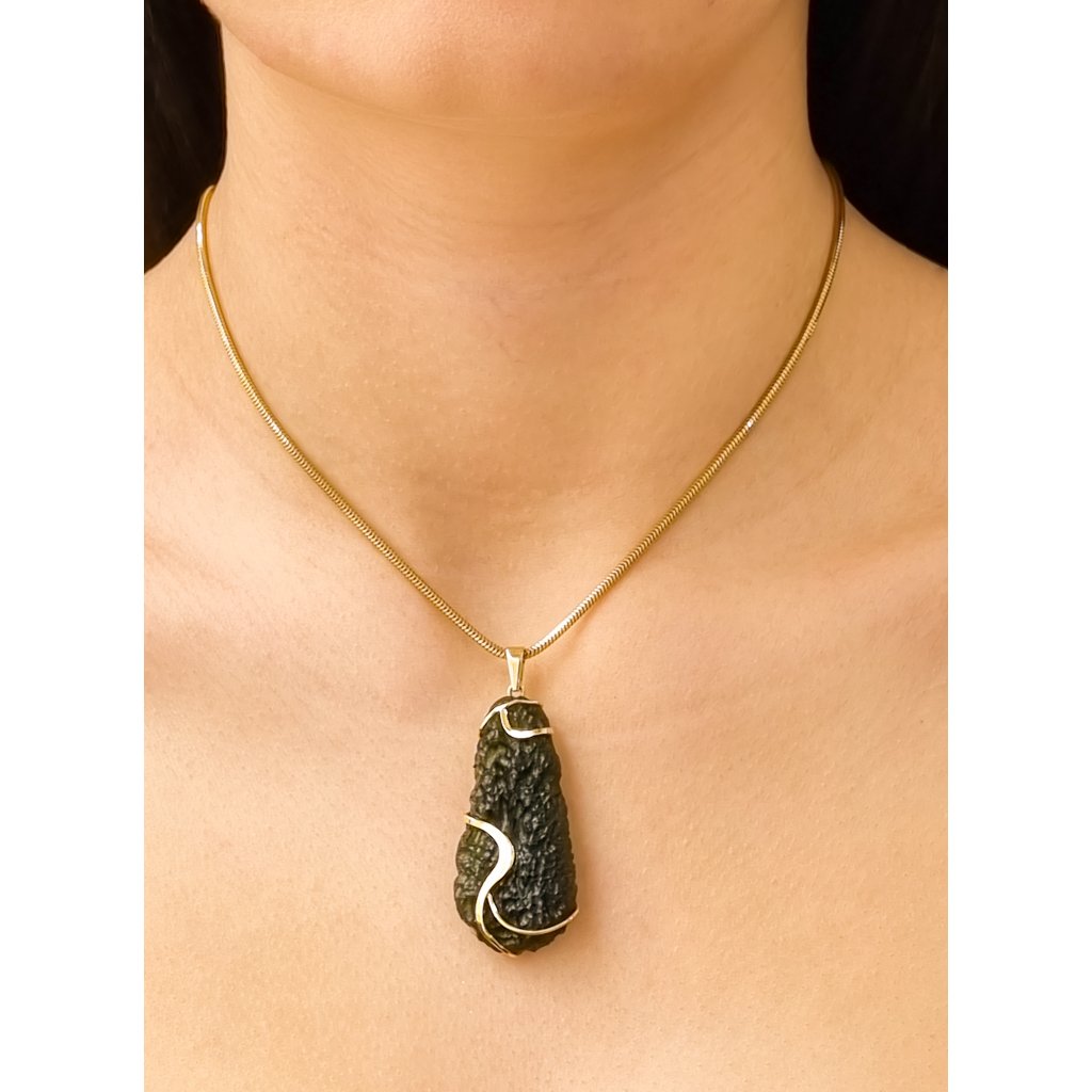 Přívěsek je nejen krásným doplňkem, ale také nositelem historie a síly, kterou můžete cítit při nošení. Každý kus je ručně zpracován s láskou a péčí, aby se zachovala jedinečnost každého vltavínu.