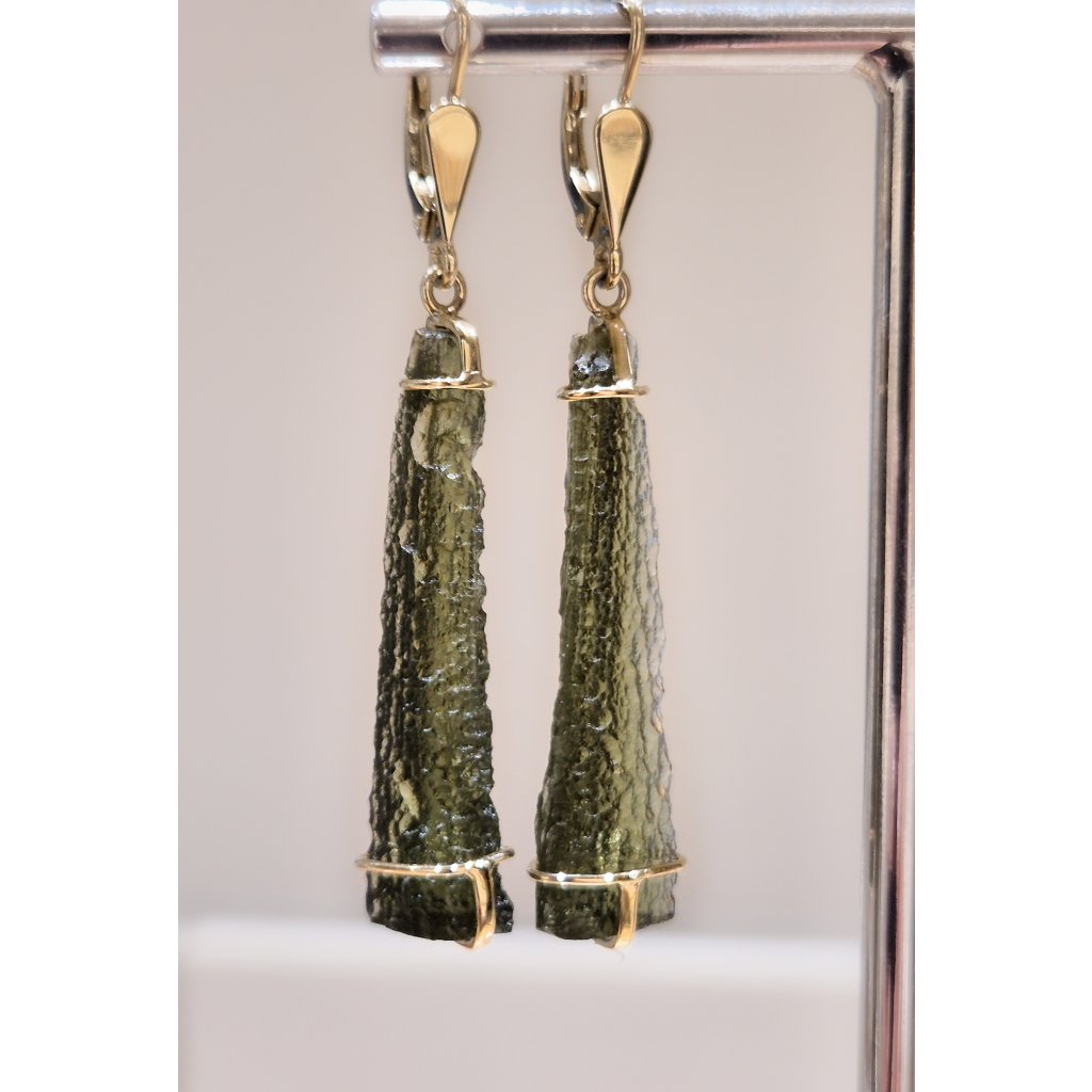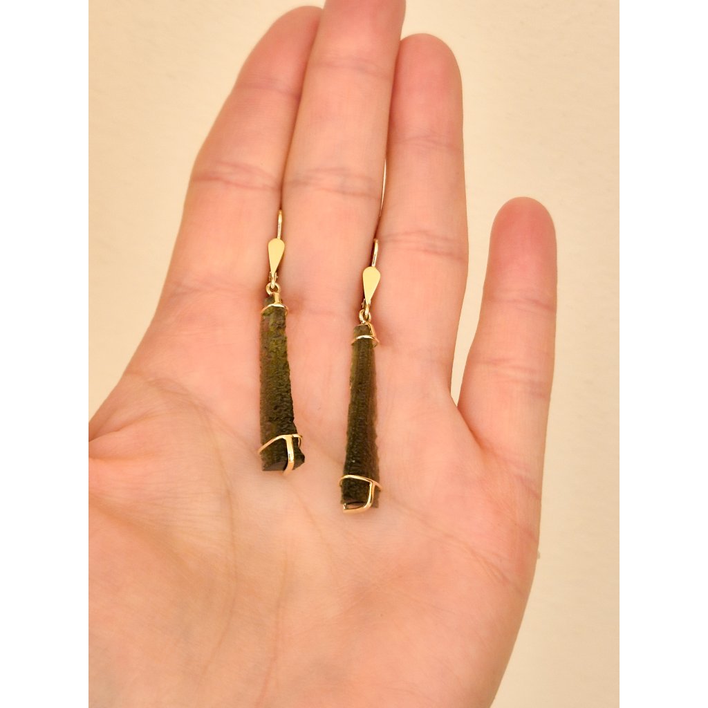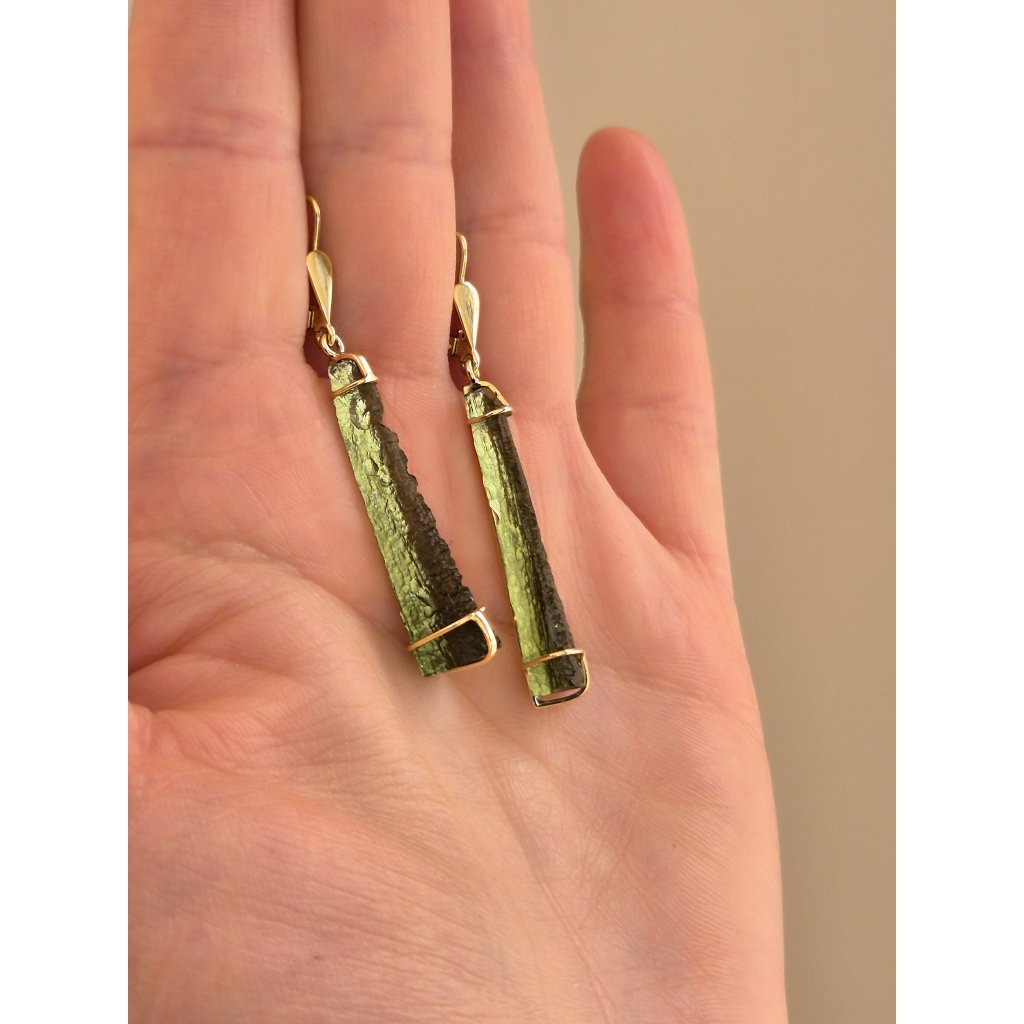 Luxusní visací zlaté náušnice s vltavíny P26 0002