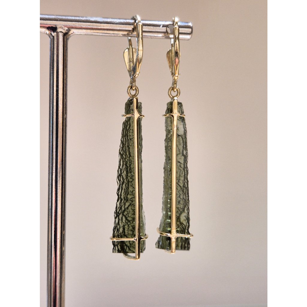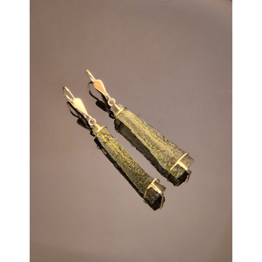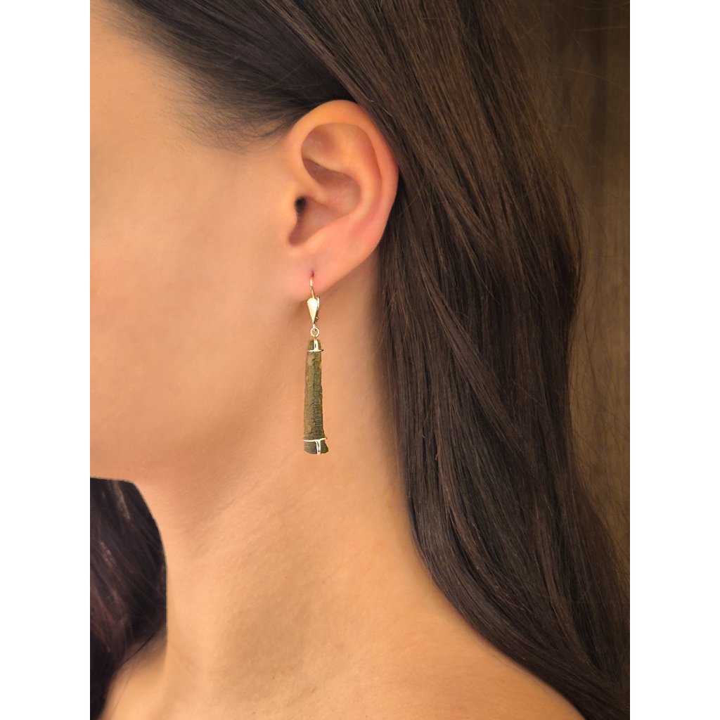 Luxusní visací zlaté náušnice s vltavíny P26 0002