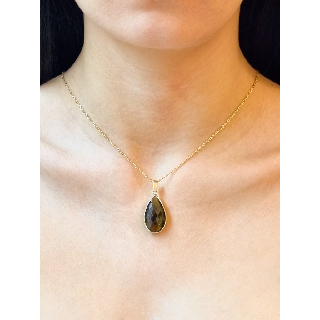 Luxusní zlatý přívěsek s broušeným vltavínem ve tvaru kapky P21 0055