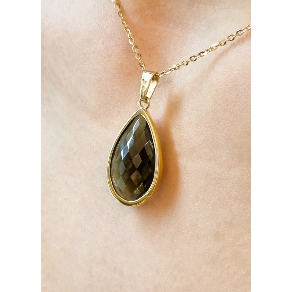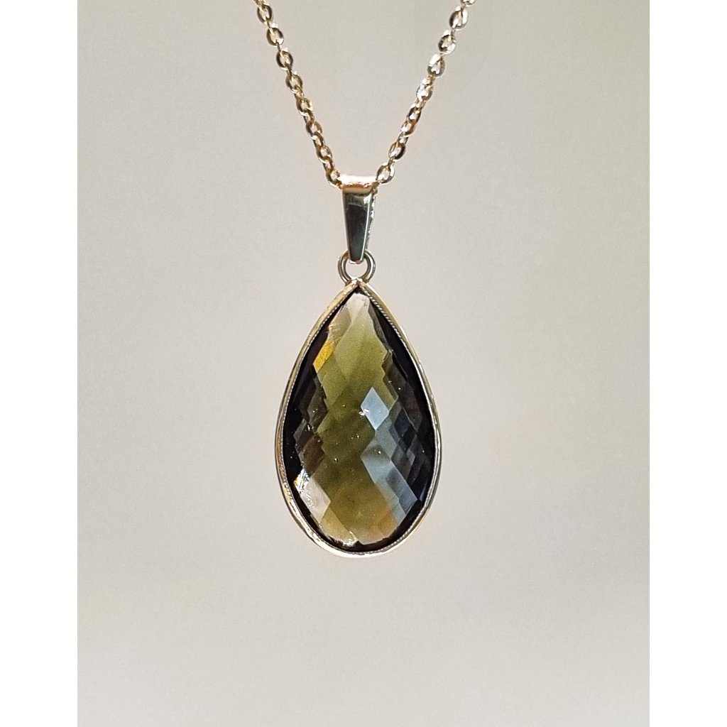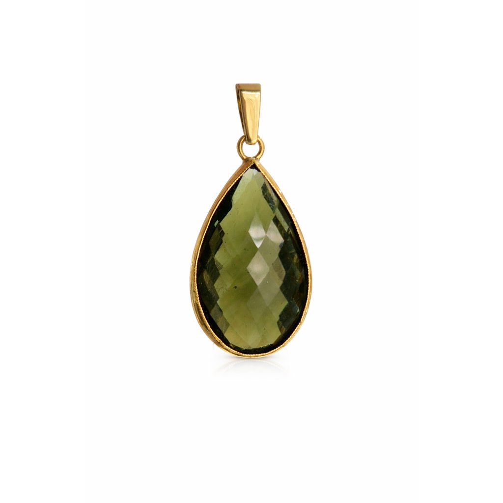 Luxusní zlatý přívěsek s broušeným vltavínem ve tvaru kapky P21 0055