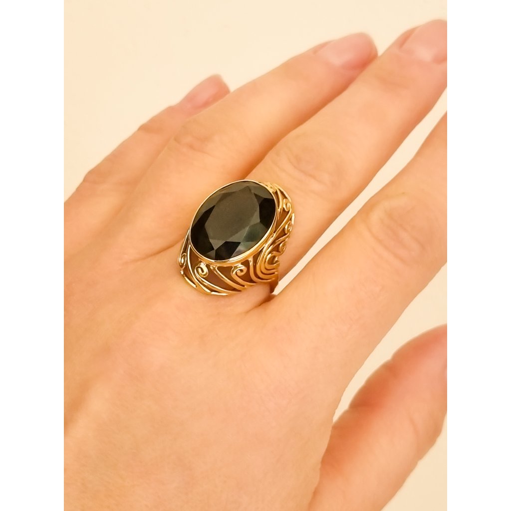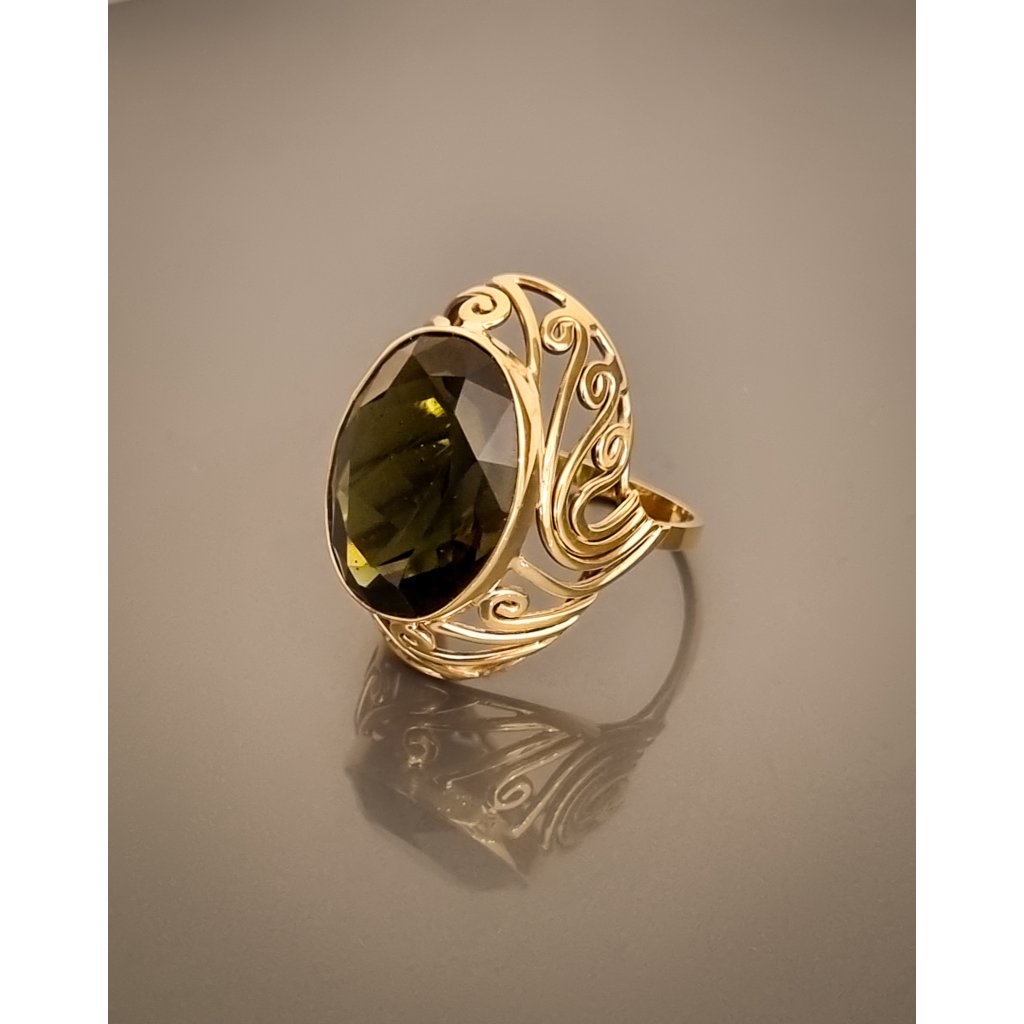 Luxusní zlatý prsten s broušeným vltavínem P2000282010009
