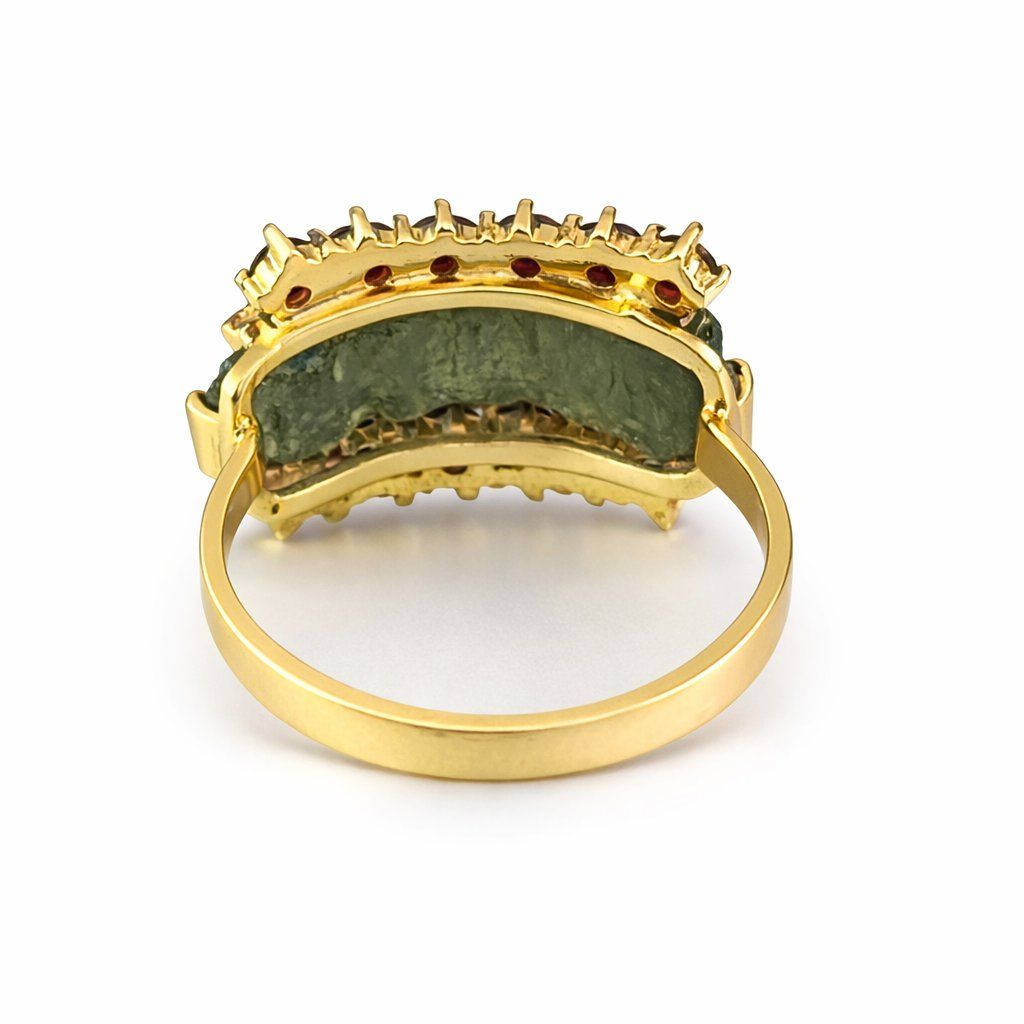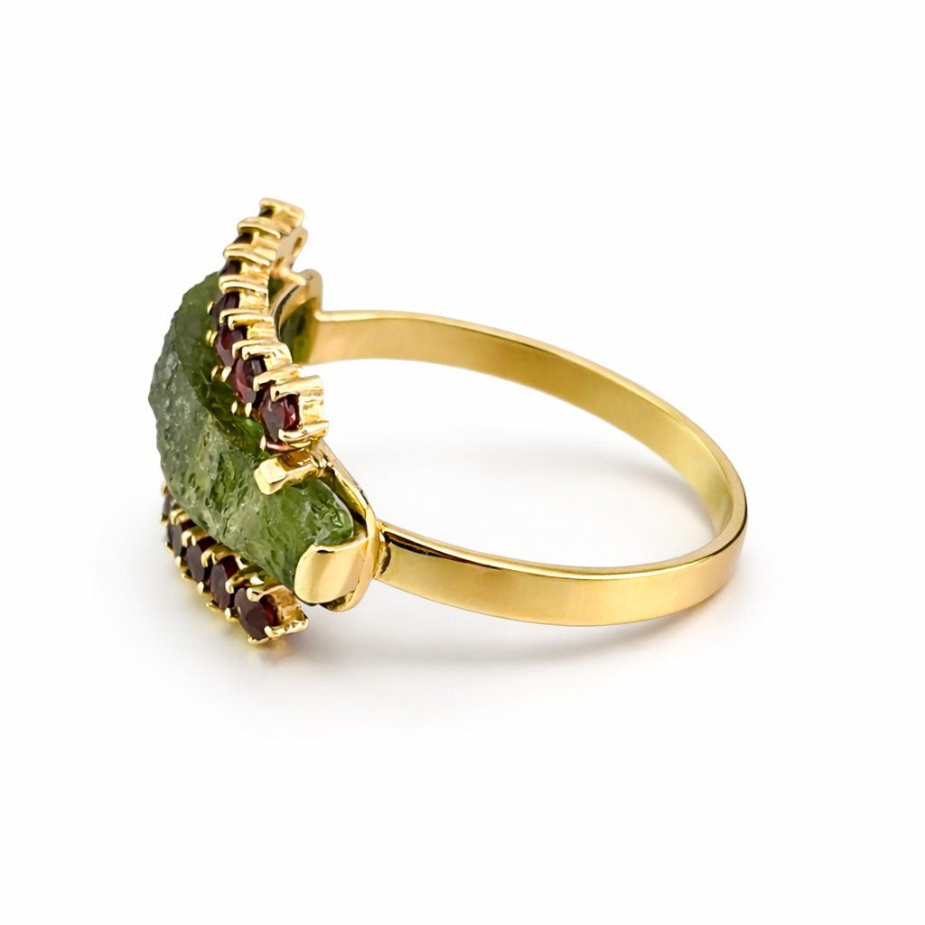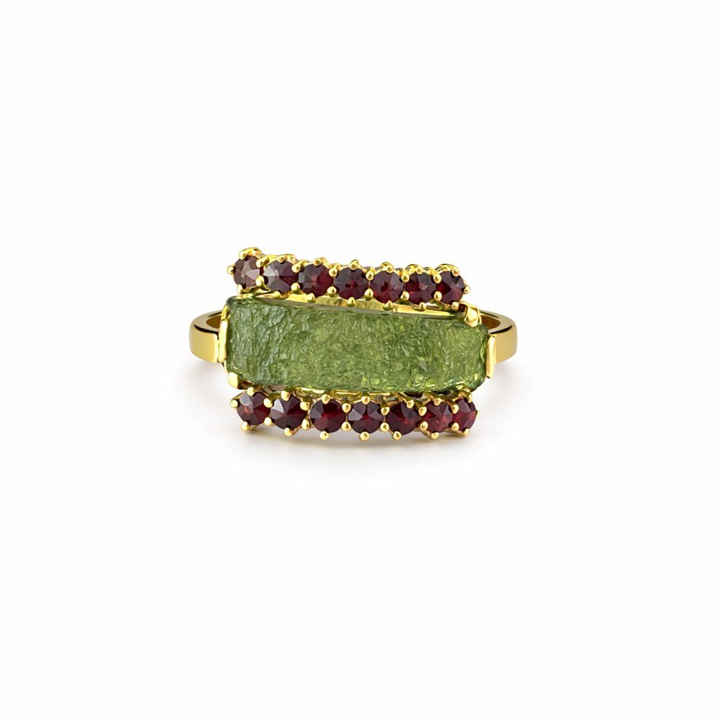 Luxusní zlatý prsten s vltavínem a granáty 22 0193