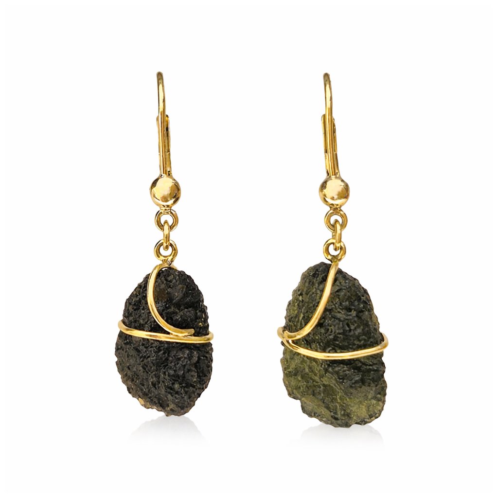 Nádherné zlaté náušnice s vltavíny 26 0029