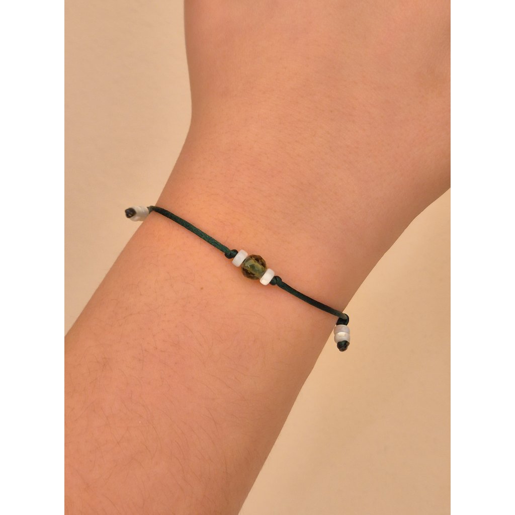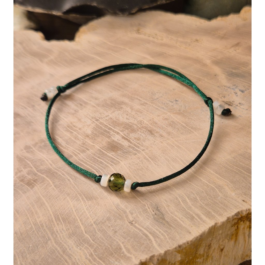 Náramek s vltavínem a perletí na šňůrce 19 0034 A