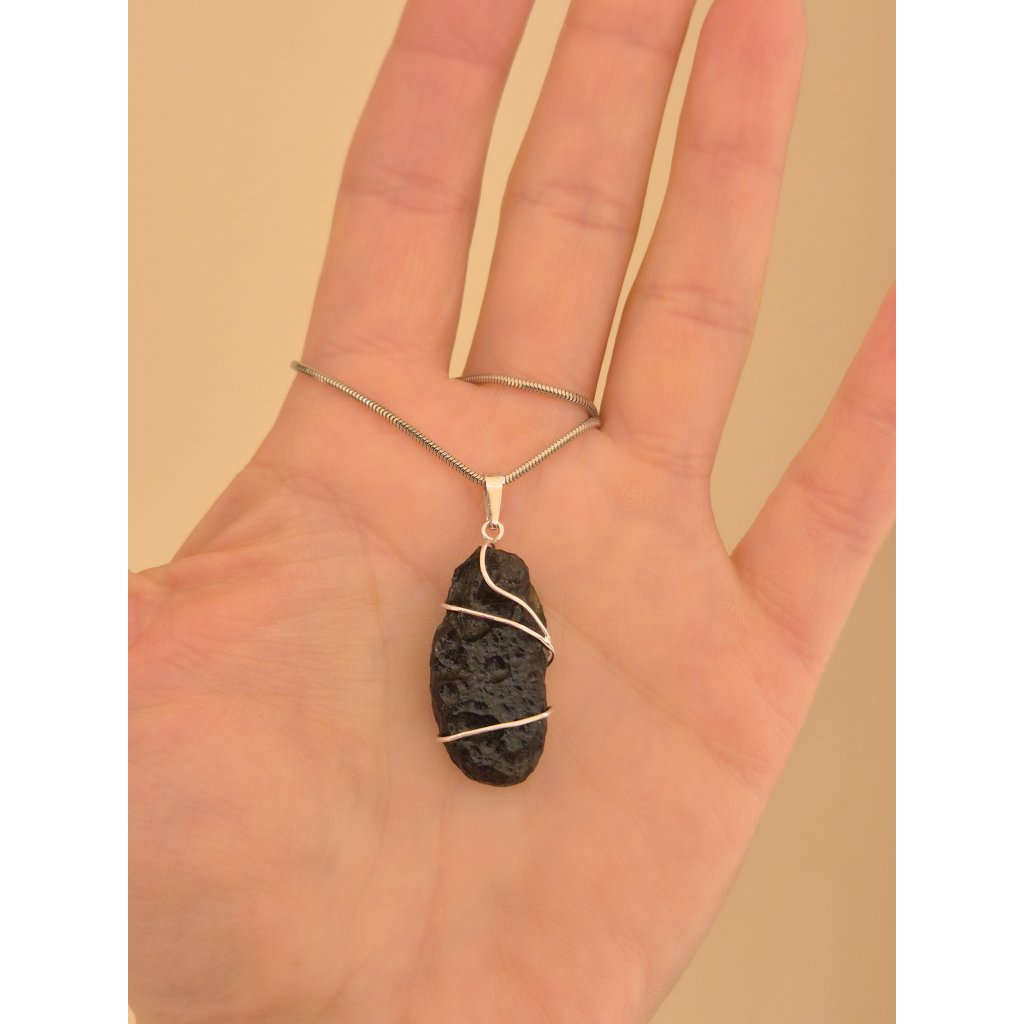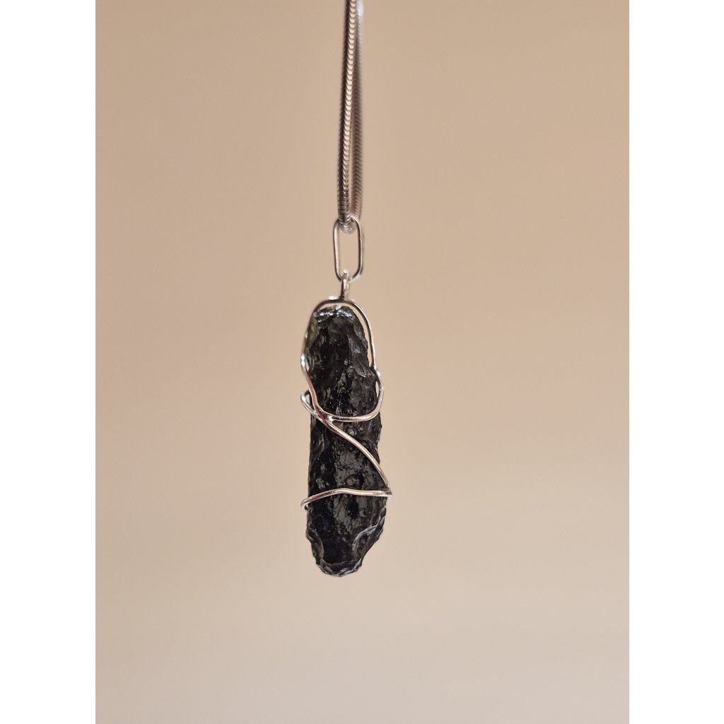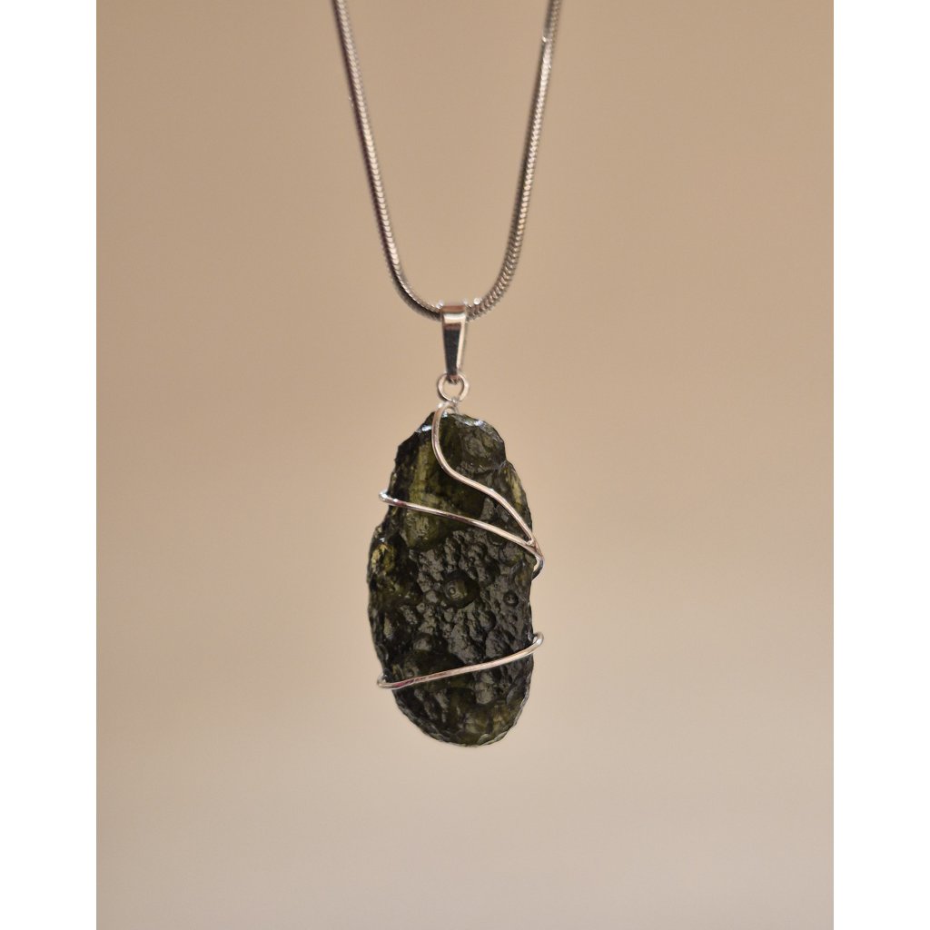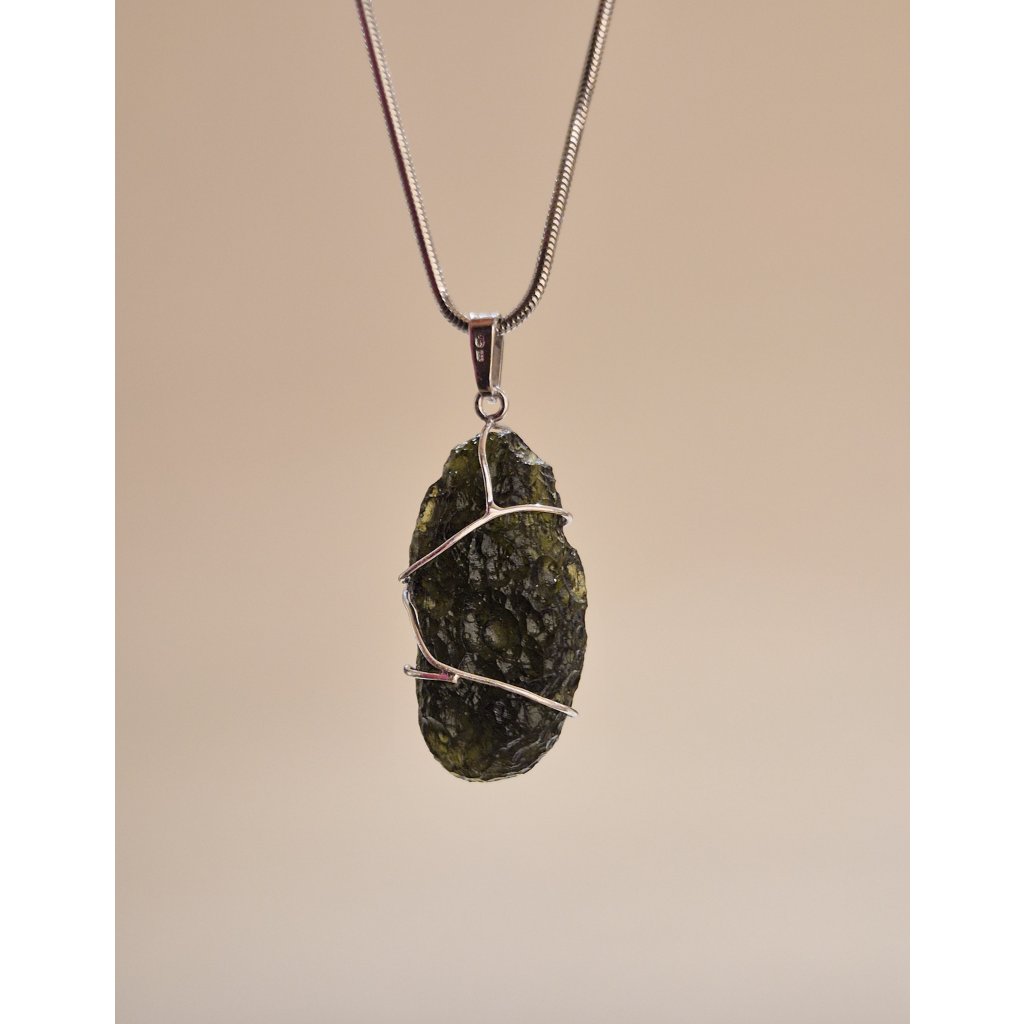 Oboustranný stříbrný přívěsek s neopracovaným vltavínem P37 0001