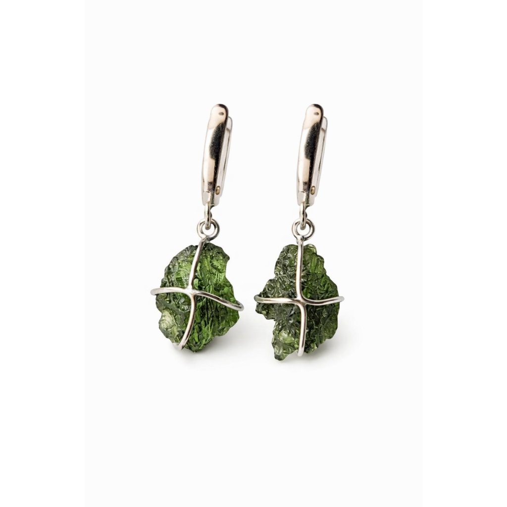 Nechte vltavín zářit v těchto stříbrných náušnicích a objevte kouzlo přírody v každém detailu.