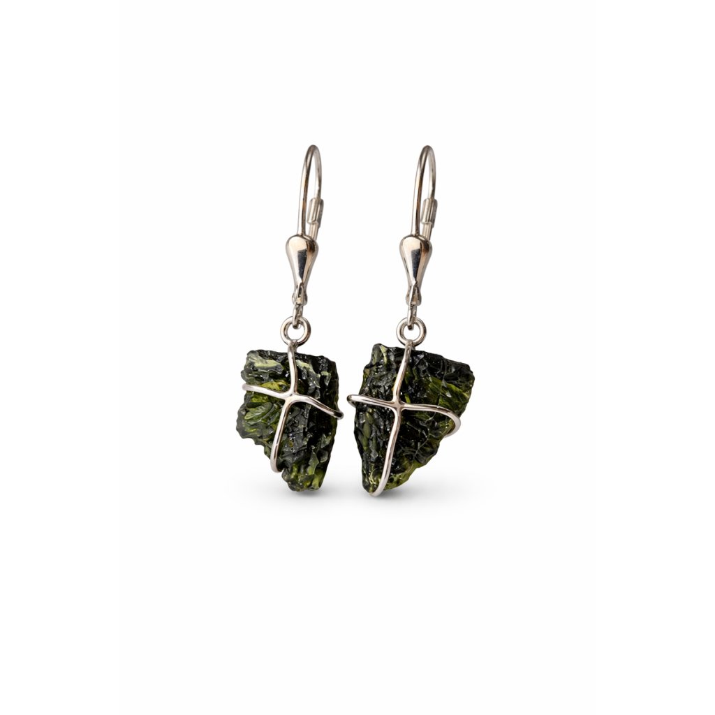 Tajemství vesmíru a přírodní krása spojené v jedinečném designu stříbrných náušnic s vltavíny.