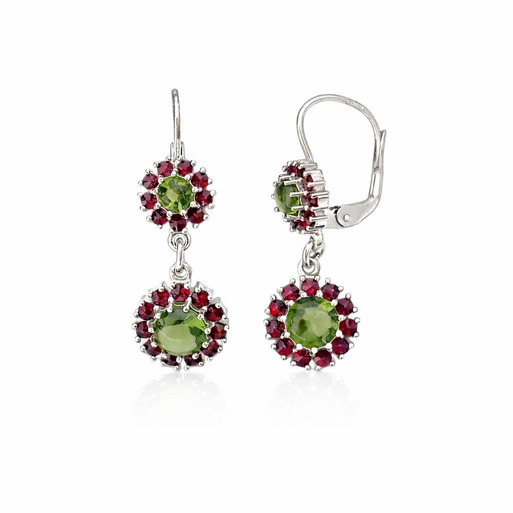 Stříbrné náušnice s vltavíny a granáty 2000333030000