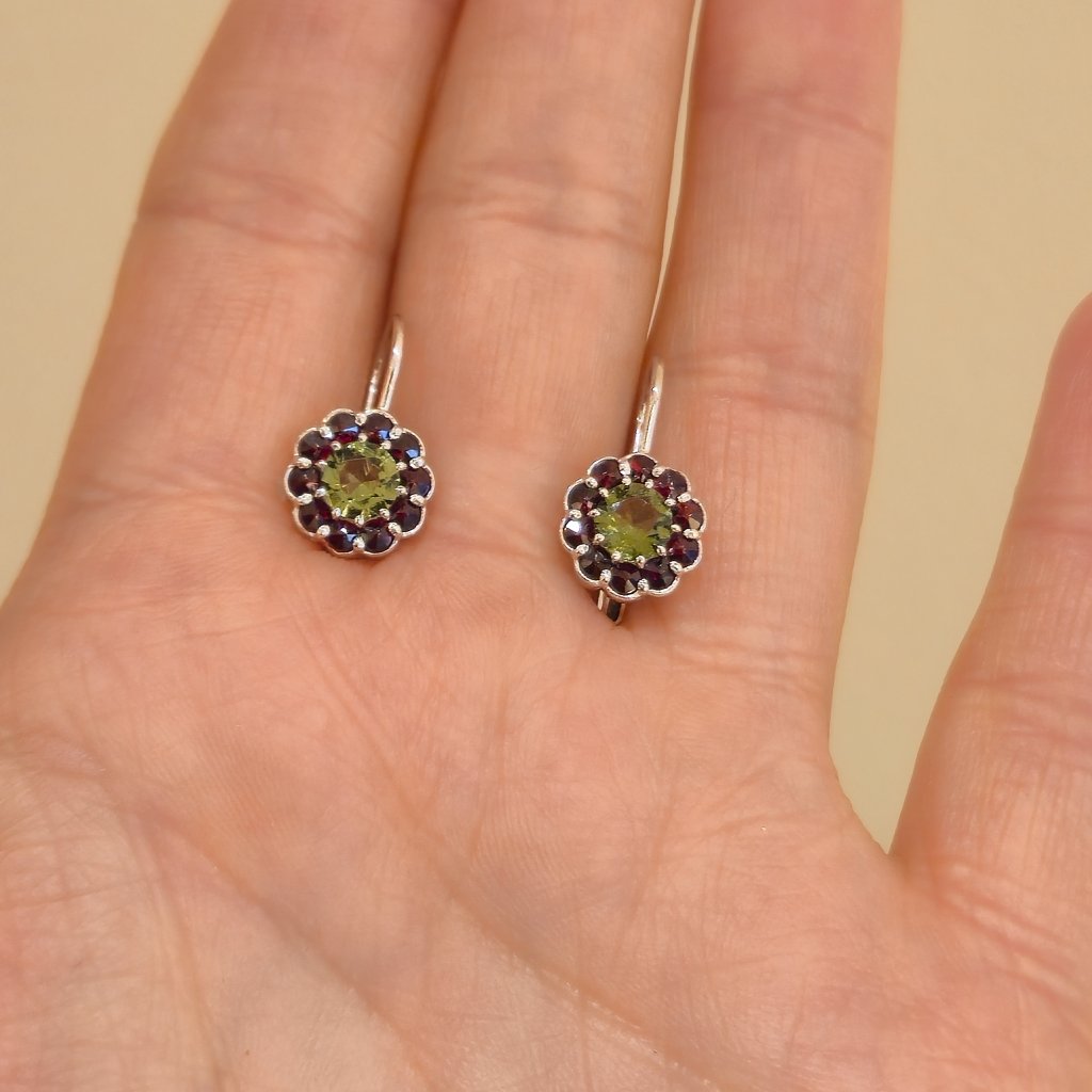 Stříbrné náušnice s vltavíny a granáty 32 0103