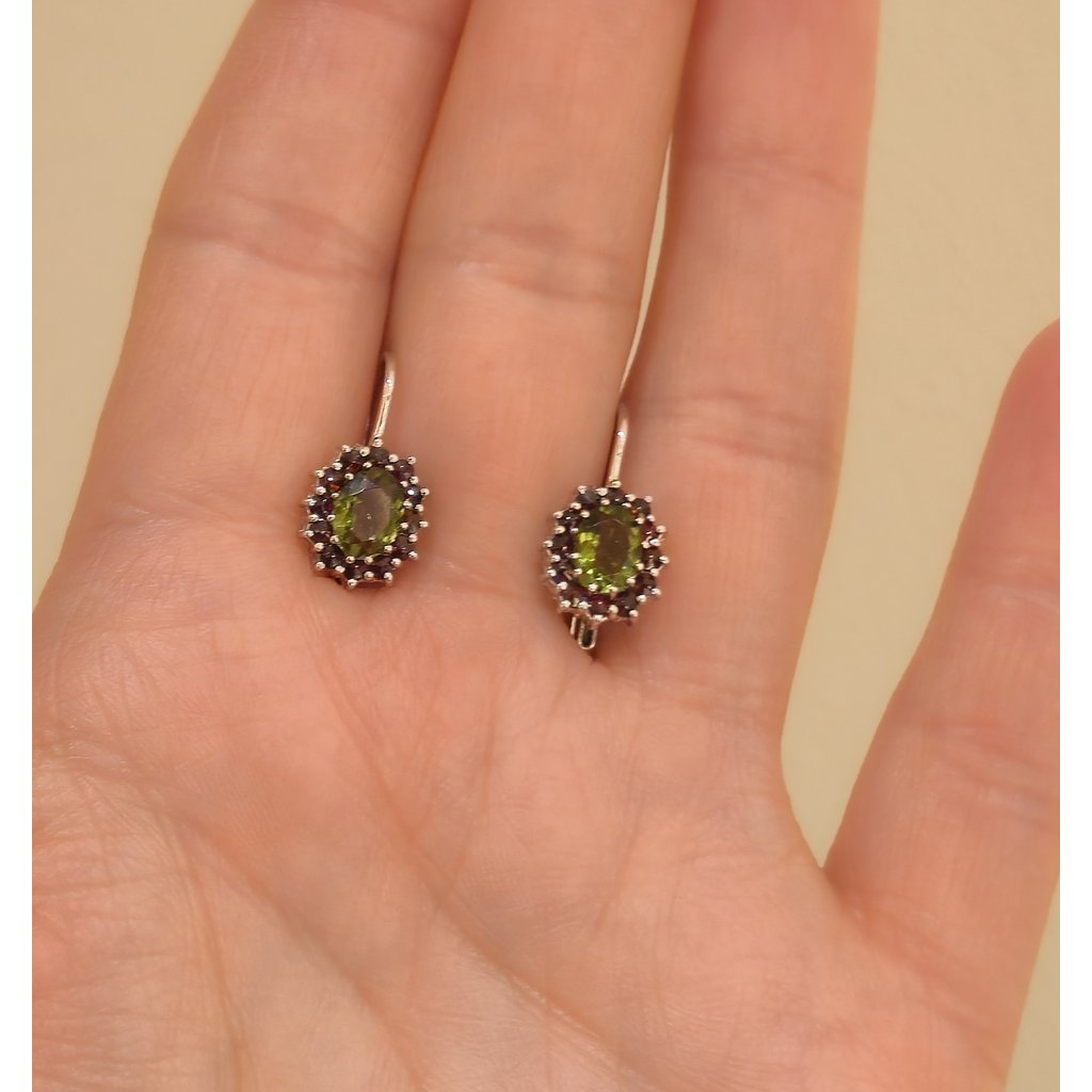 Stříbrné náušnice s vltavíny a granáty P32 0076