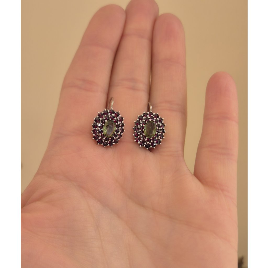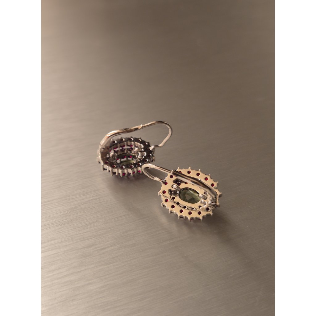 Stříbrné náušnice s vltavíny a granáty P46 0016
