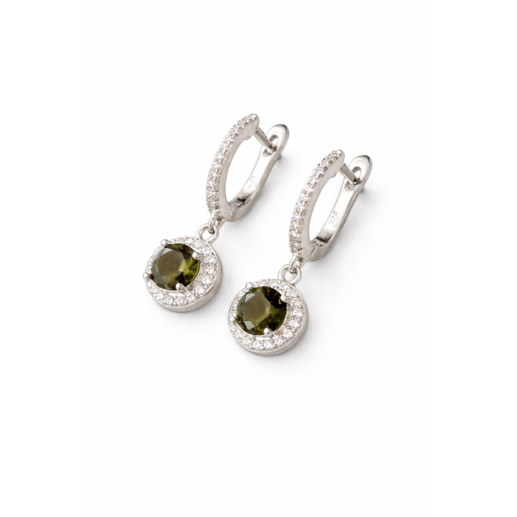 Stříbrné náušnice s vltavíny a zirkony 2000344960006