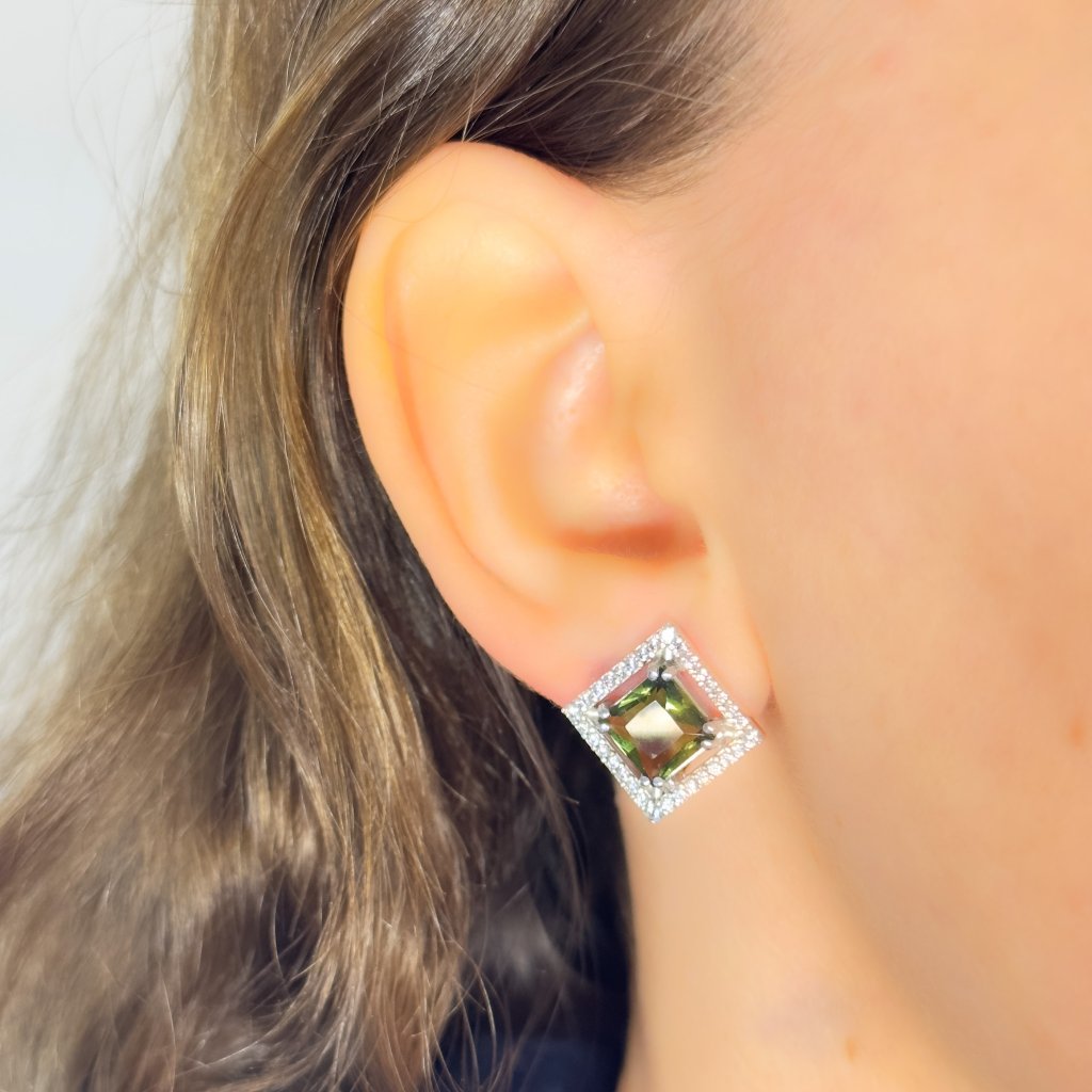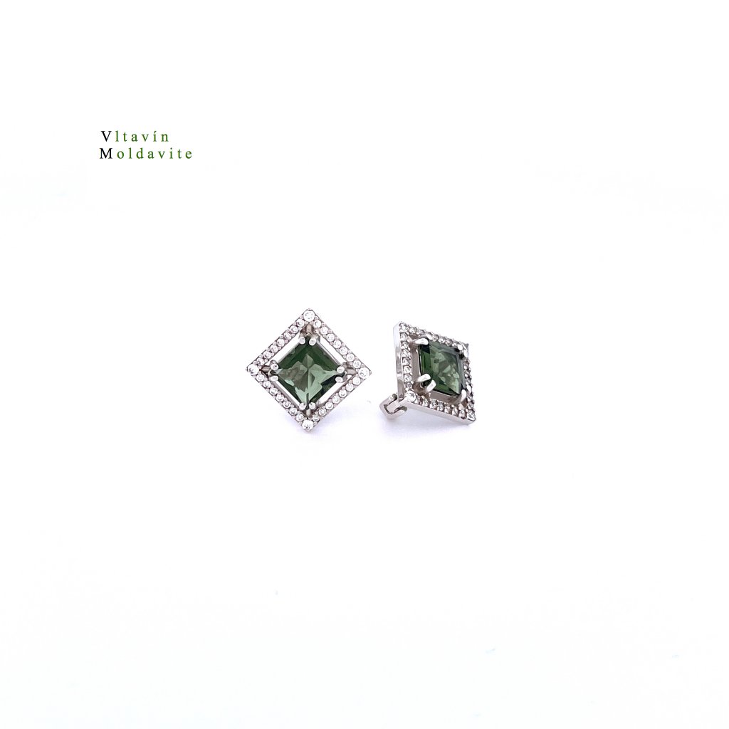 Stříbrné náušnice s vltavíny a zirkony P32 0031