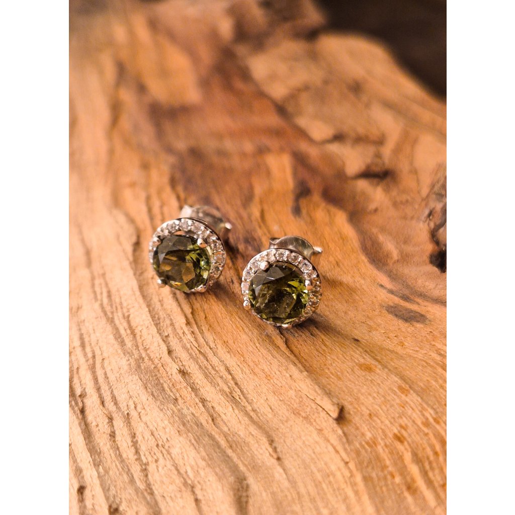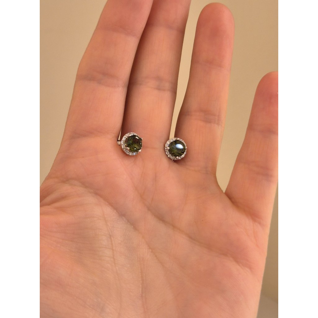 Stříbrné náušnice s vltavíny a zirkony P32 0056