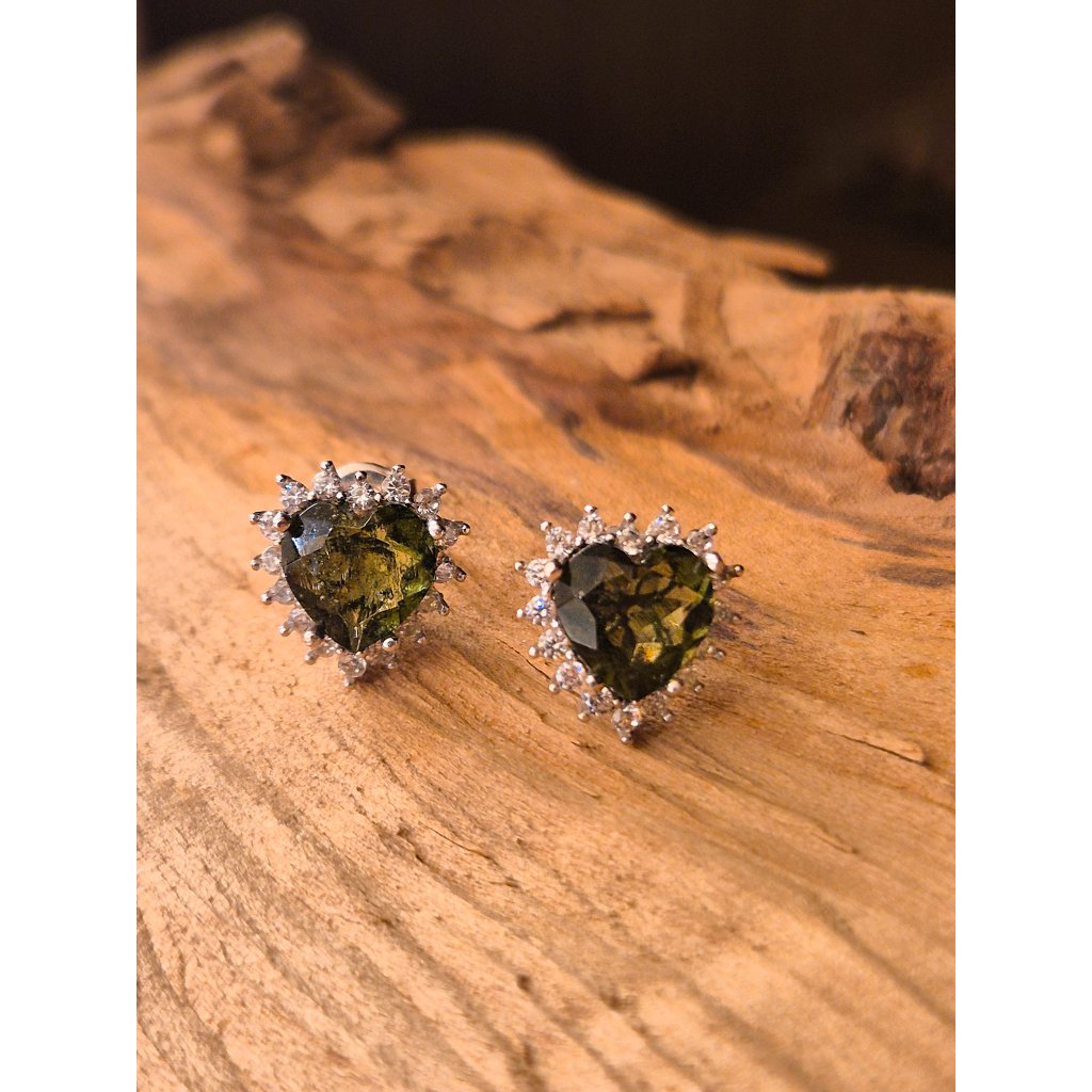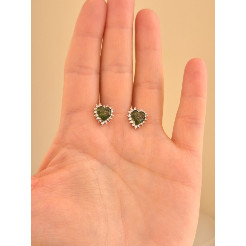 Stříbrné náušnice s vltavíny a zirkony ve tvaru srdce 2000373250000