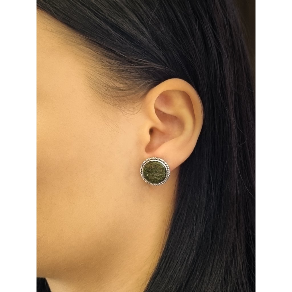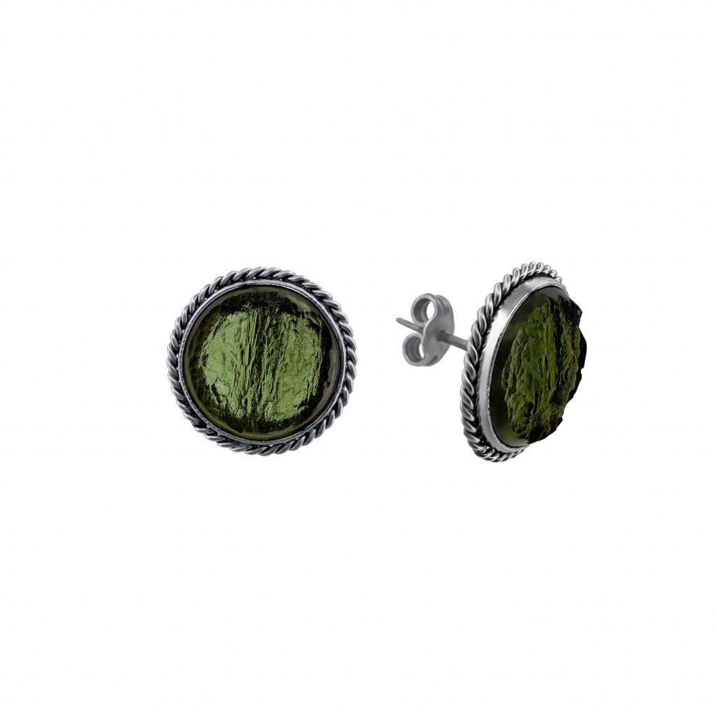 Stříbrné náušnice s vltavíny kulaté P32 0065