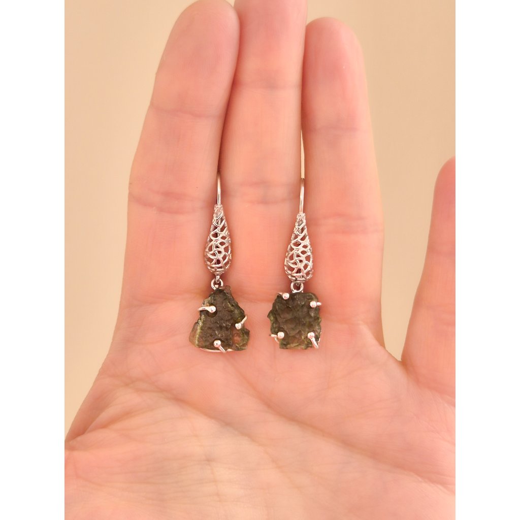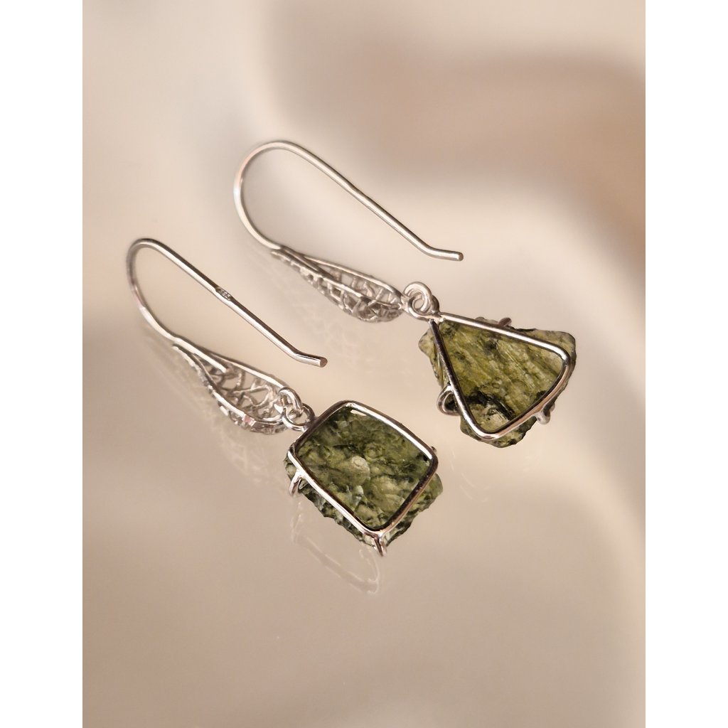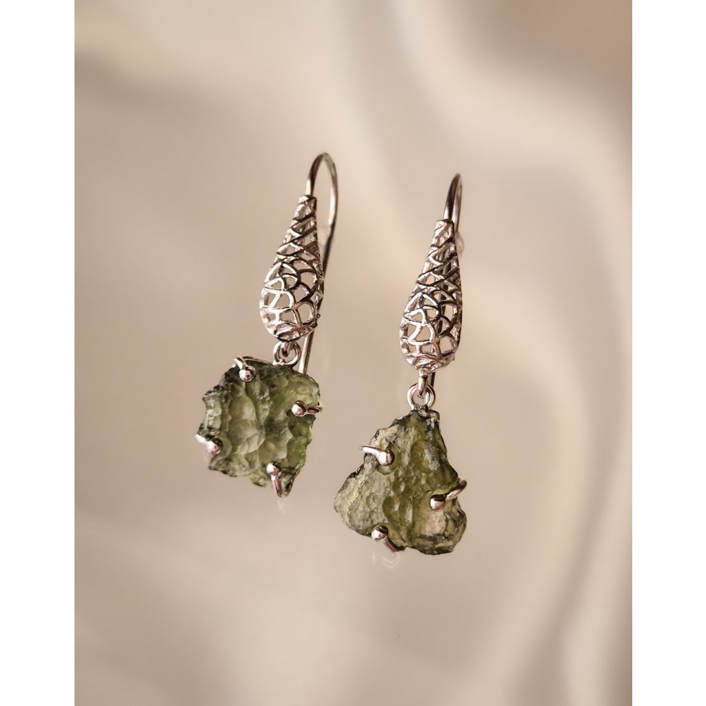 Zachyťte energii vesmíru v unikátních visacích náušnicích s pravými českými vltavíny.