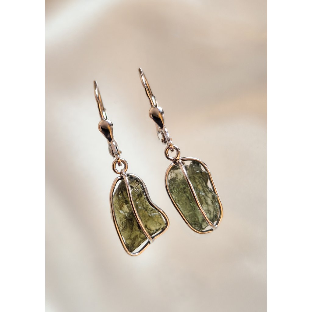 Ponořte se do tajů českého vltavínu – ručně vyráběné visací náušnice ze stříbra.
