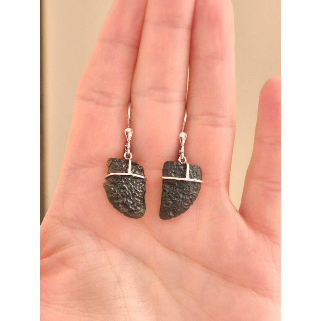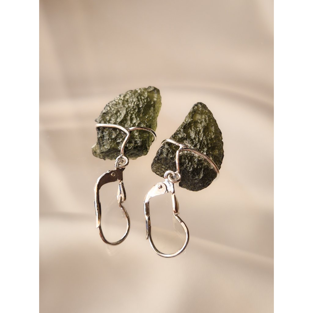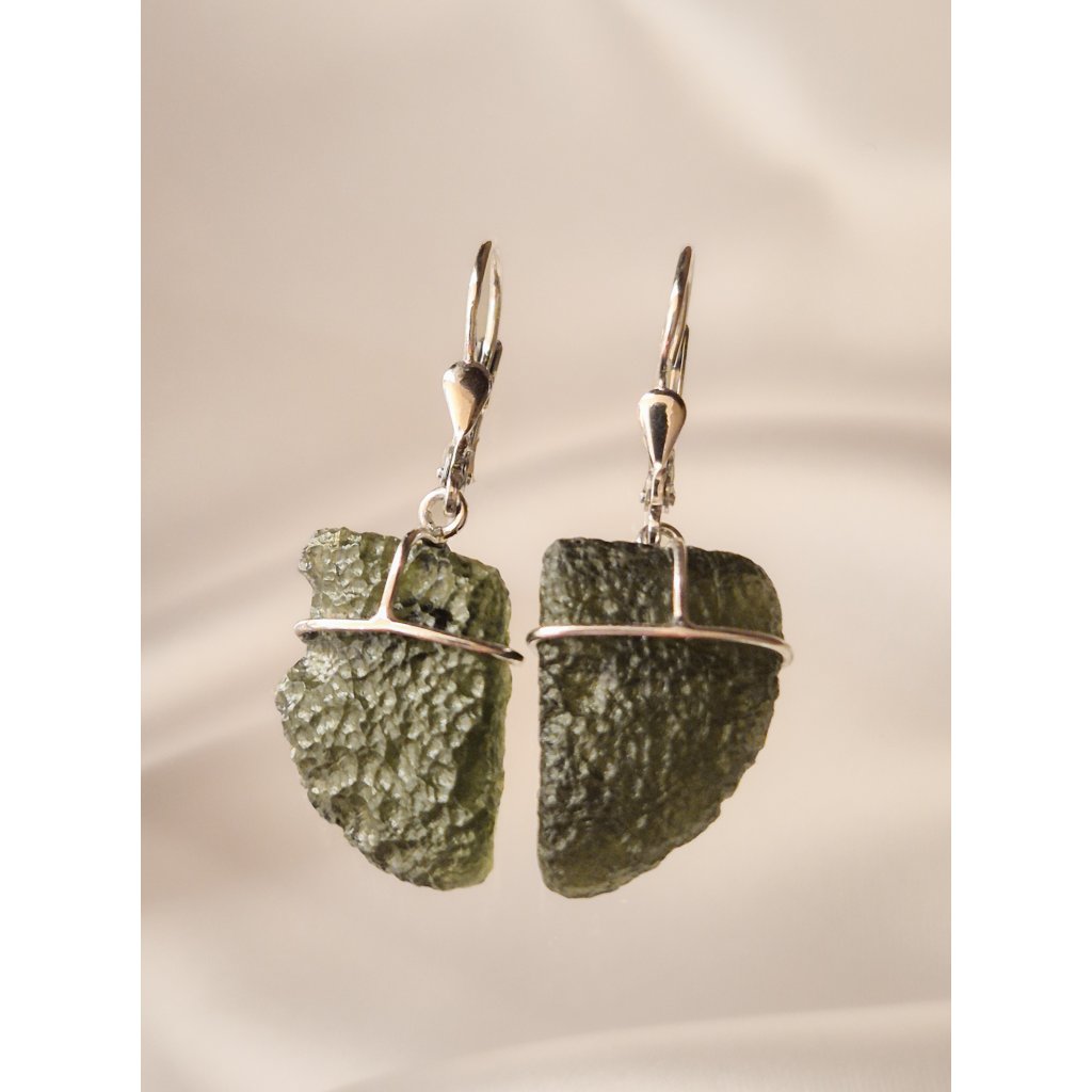 Stříbrné visací náušnice s nebroušenými vltavíny P36 0013
