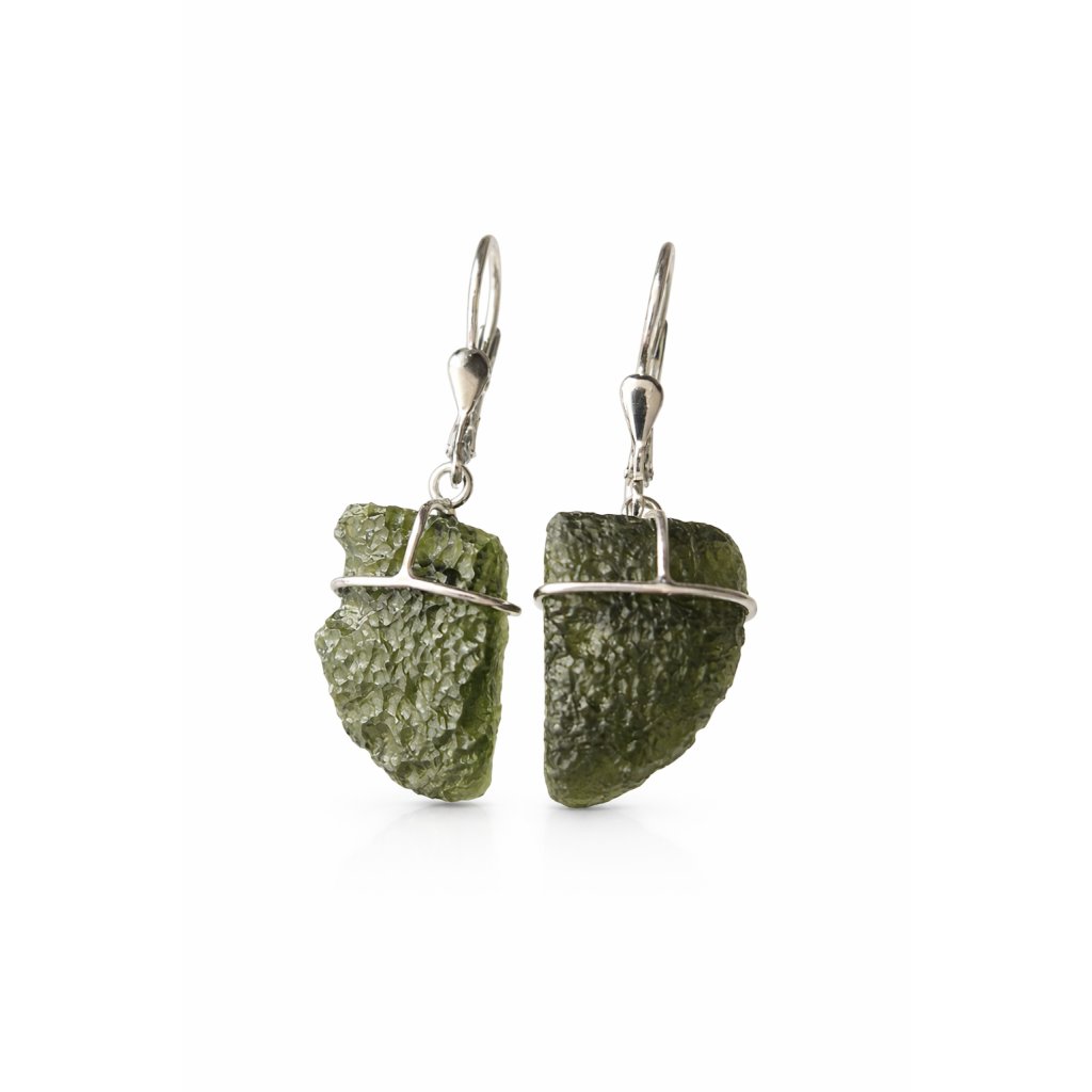 Každý kus je jedinečný – stříbrné náušnice s pravými českými vltavíny ručně vyráběné v Česku.