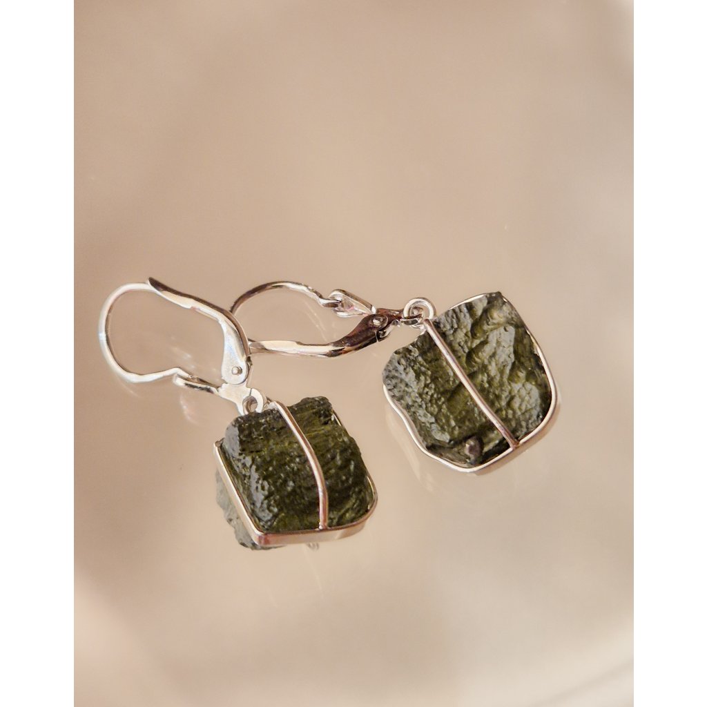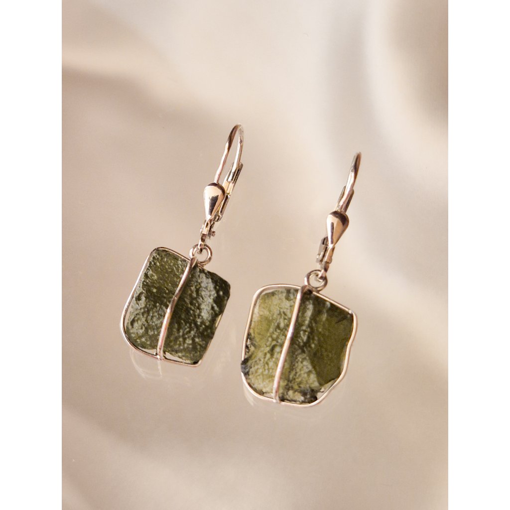 Vltavín – kámen s příběhem. Stříbrné visací náušnice s pravými českými vltavíny, vytvořené ručně.