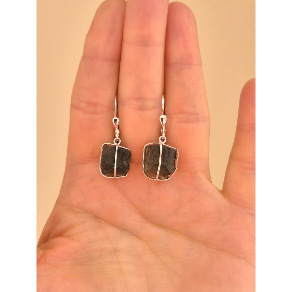 Stříbrné visací náušnice s nebroušenými vltavíny P36 0014