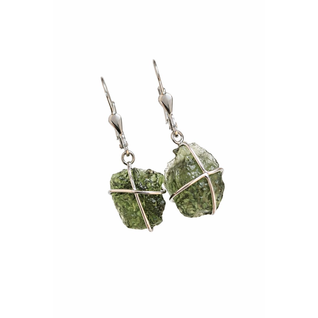 Stříbrné visací náušnice s nebroušenými vltavíny P36 0021