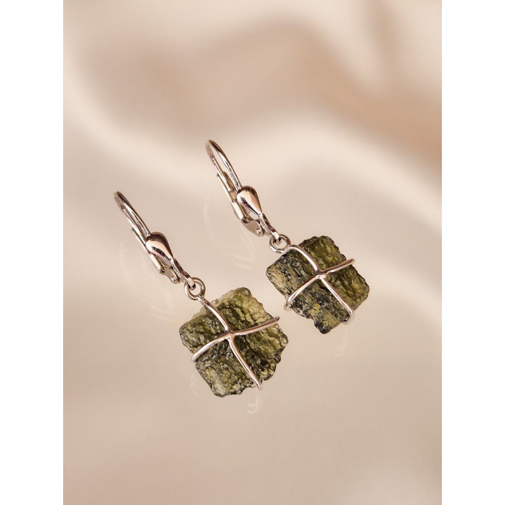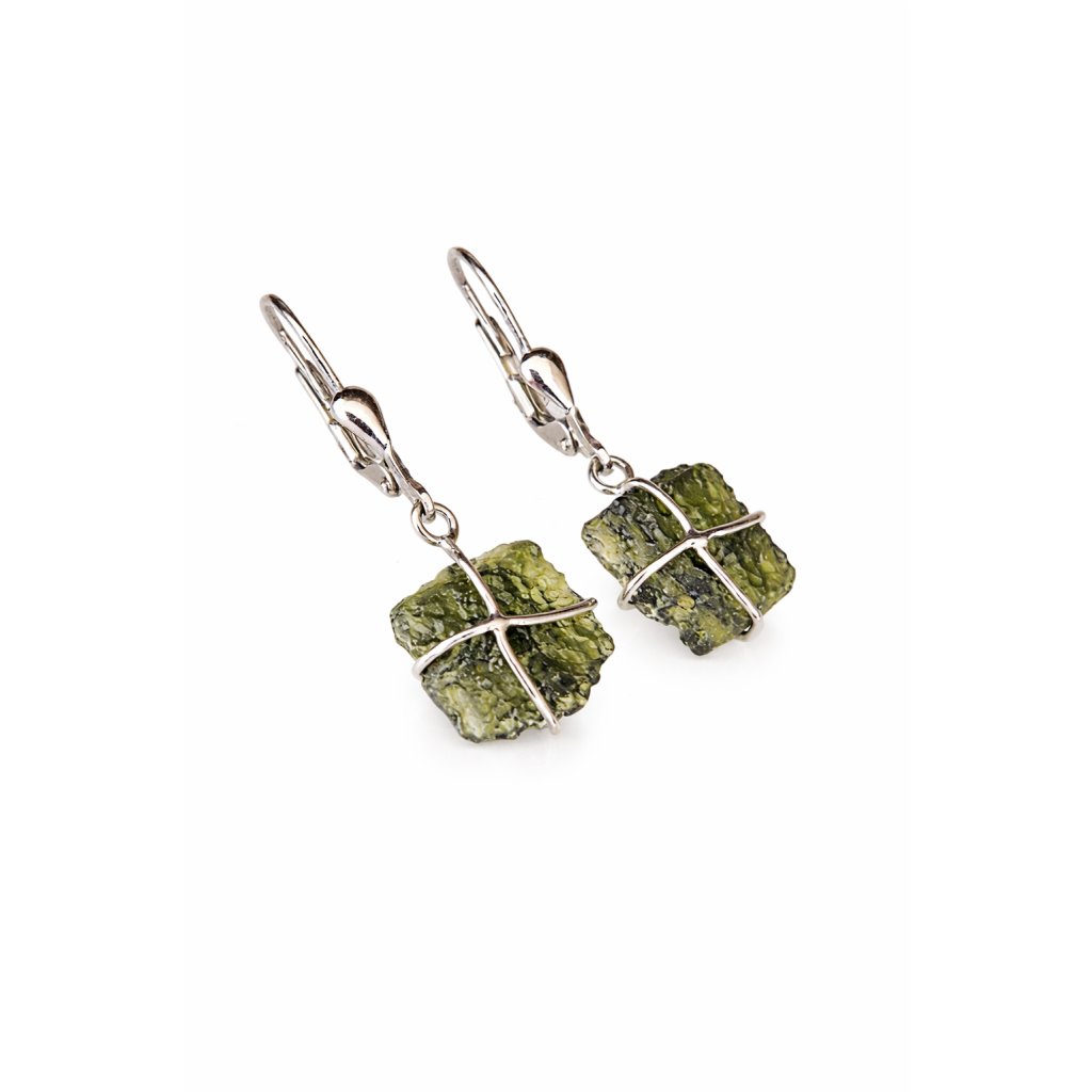 Stříbrné visací náušnice s nebroušenými vltavíny P36 0038