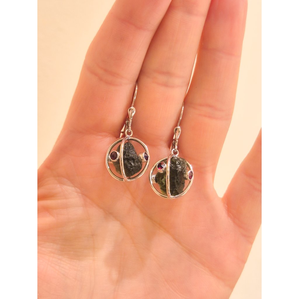Klenot, který vás propojí s vesmírem – stříbrné náušnice s vltavíny v surové podobě.