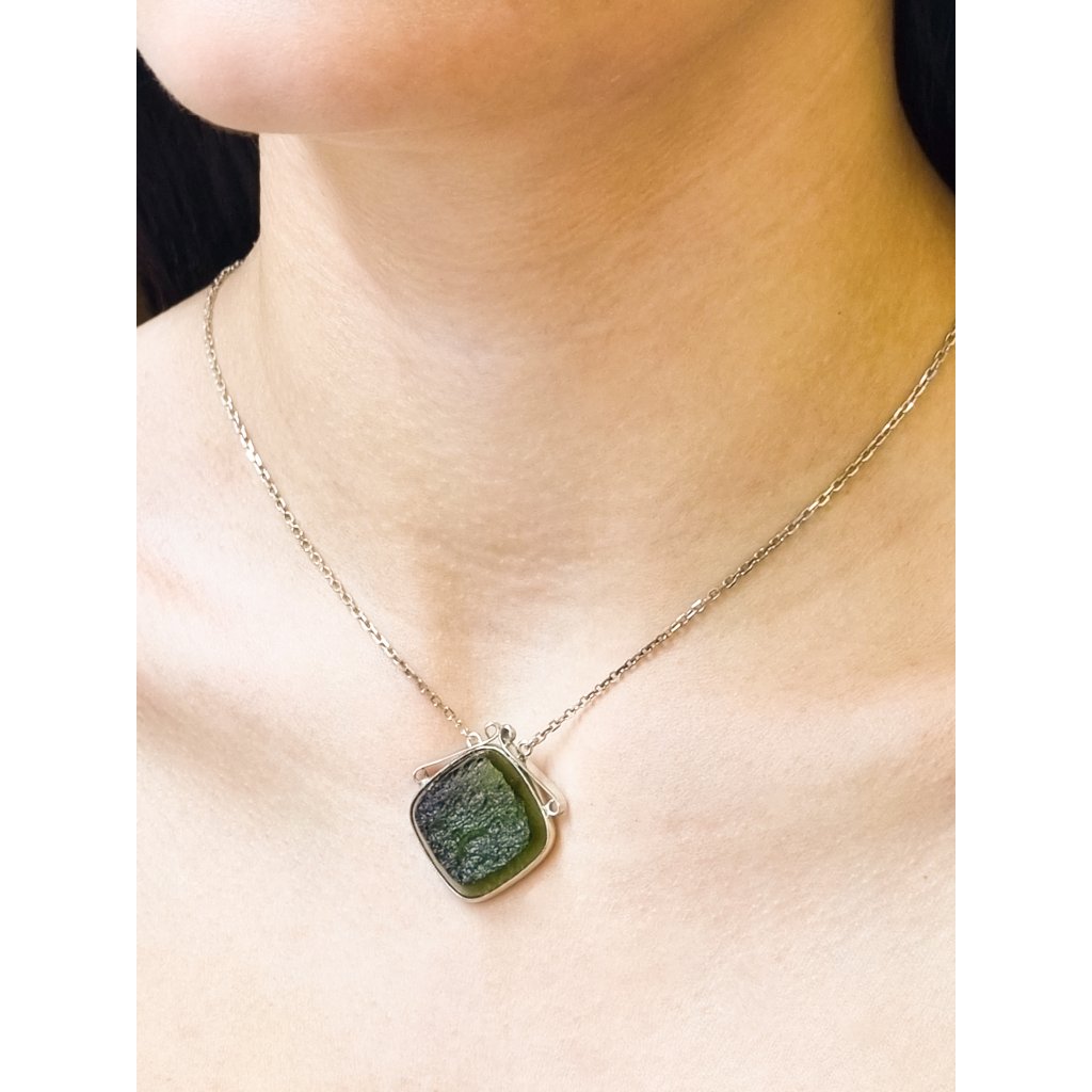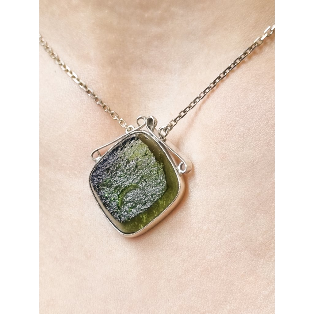 Stříbrný náhrdelník s vltavínem, polobrus P39 0004