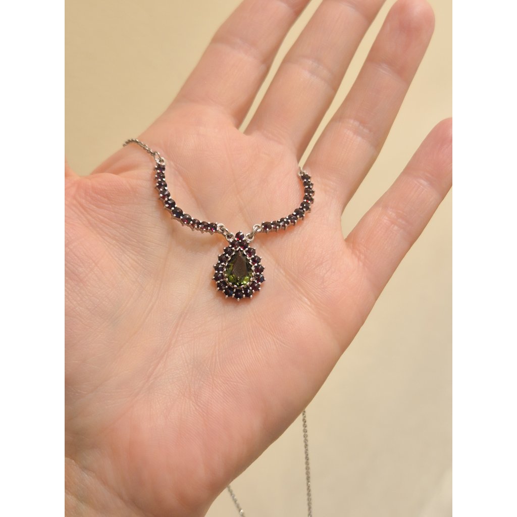 Stříbrný náhrdelník s vltavínem a granáty P48 0001