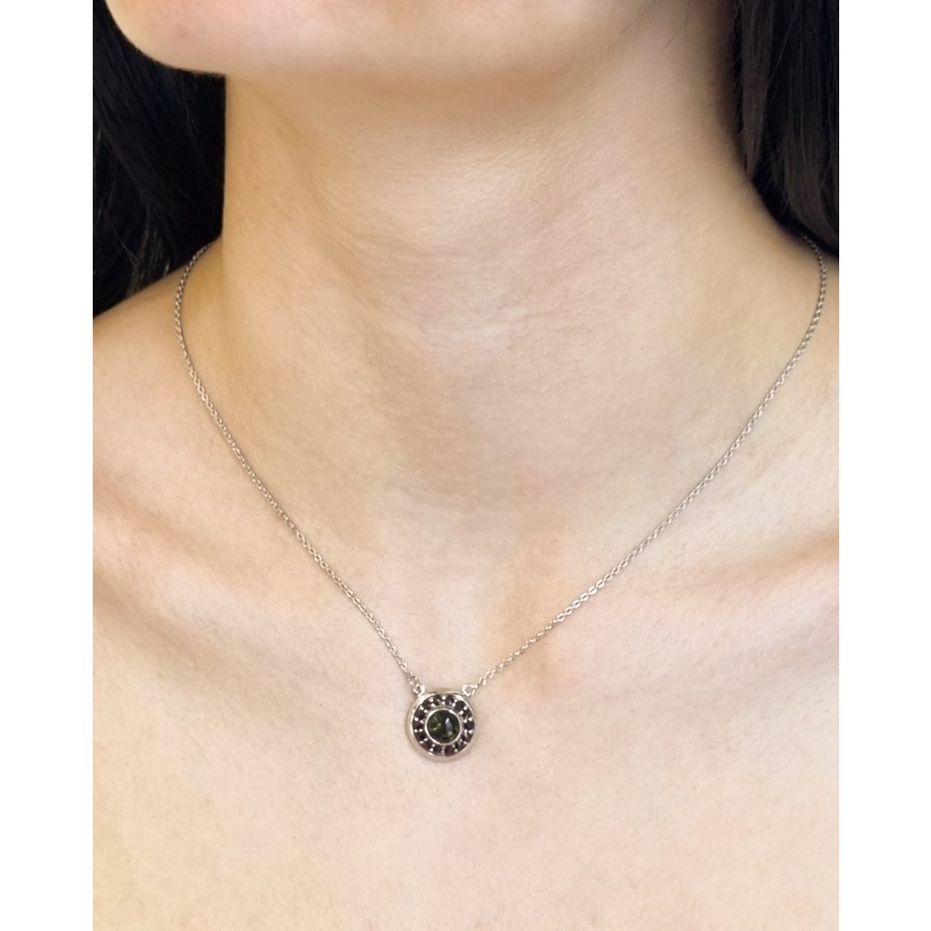 Stříbrný náhrdelník s vltavínem a granáty P48 0016