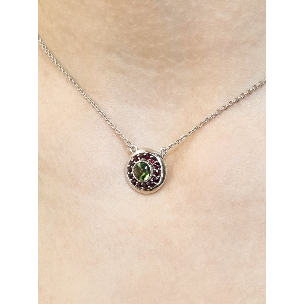 Stříbrný náhrdelník s vltavínem a granáty
