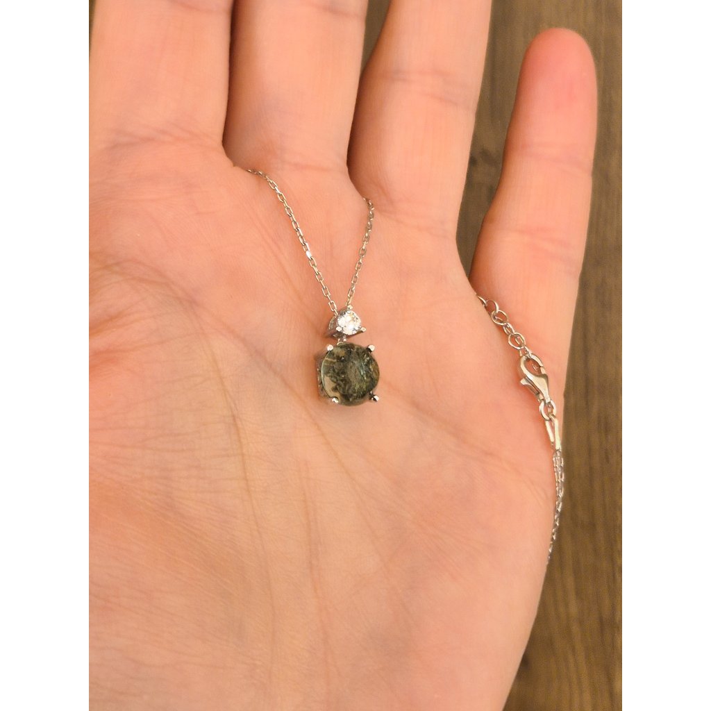 Stříbrný náhrdelník s vltavínem a zirkonem P2000353010006