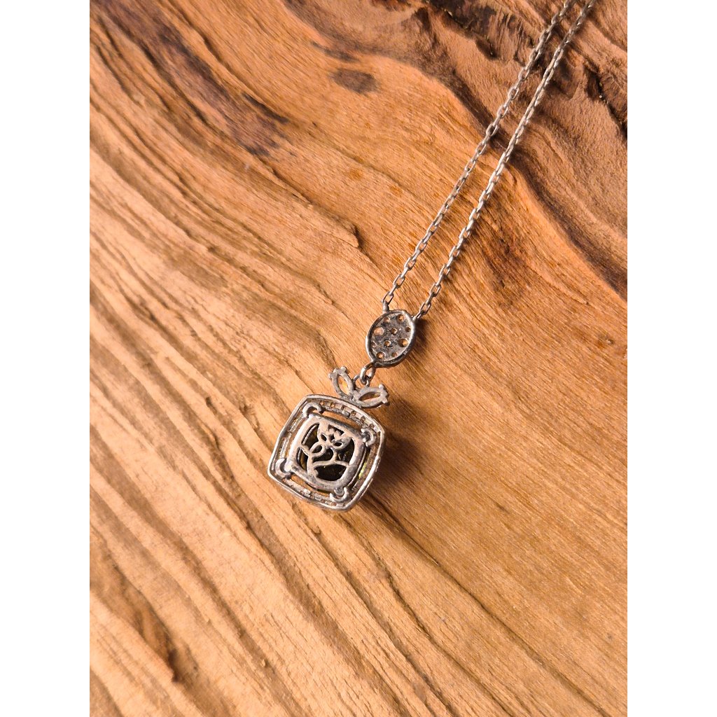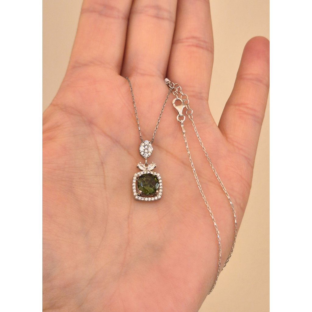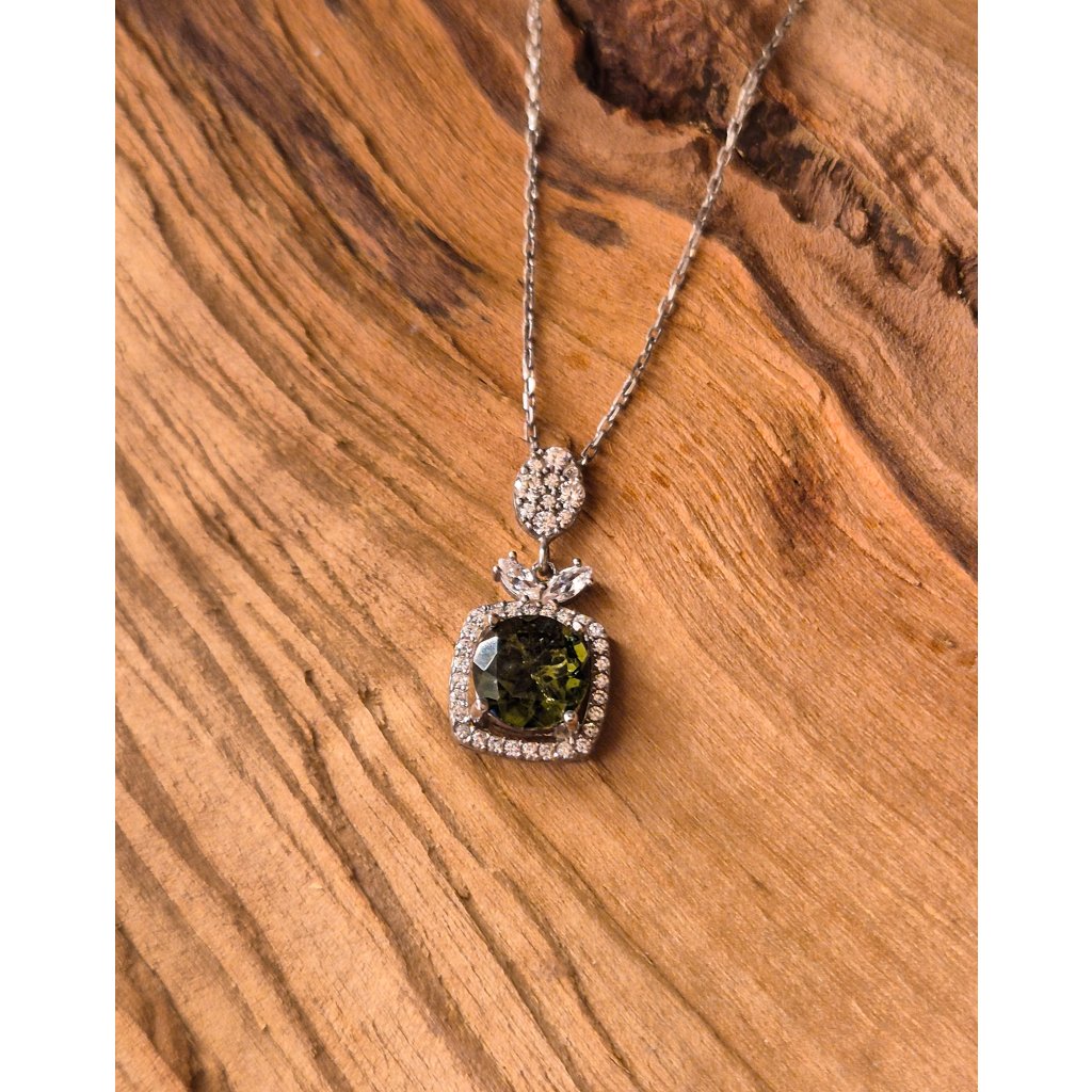 Stříbrný náhrdelník s vltavínem a zirkony P2000353040003