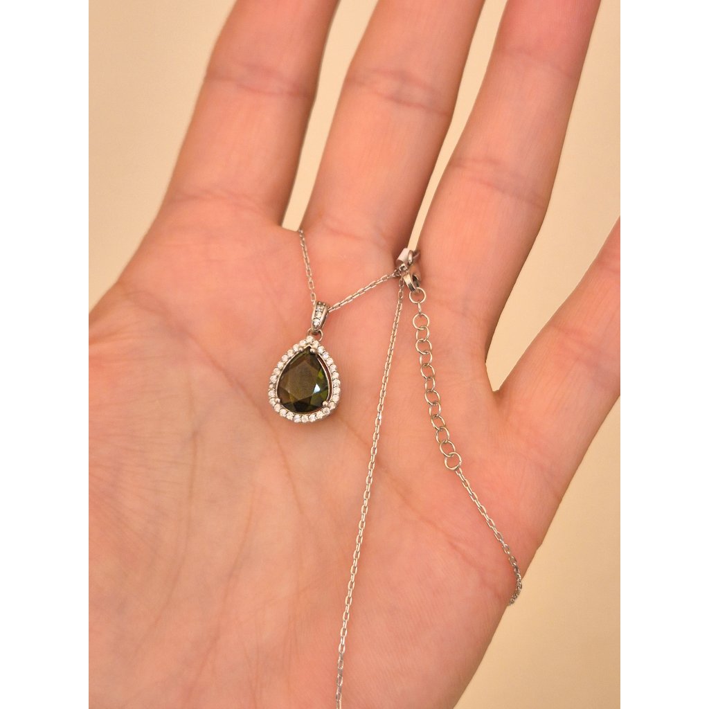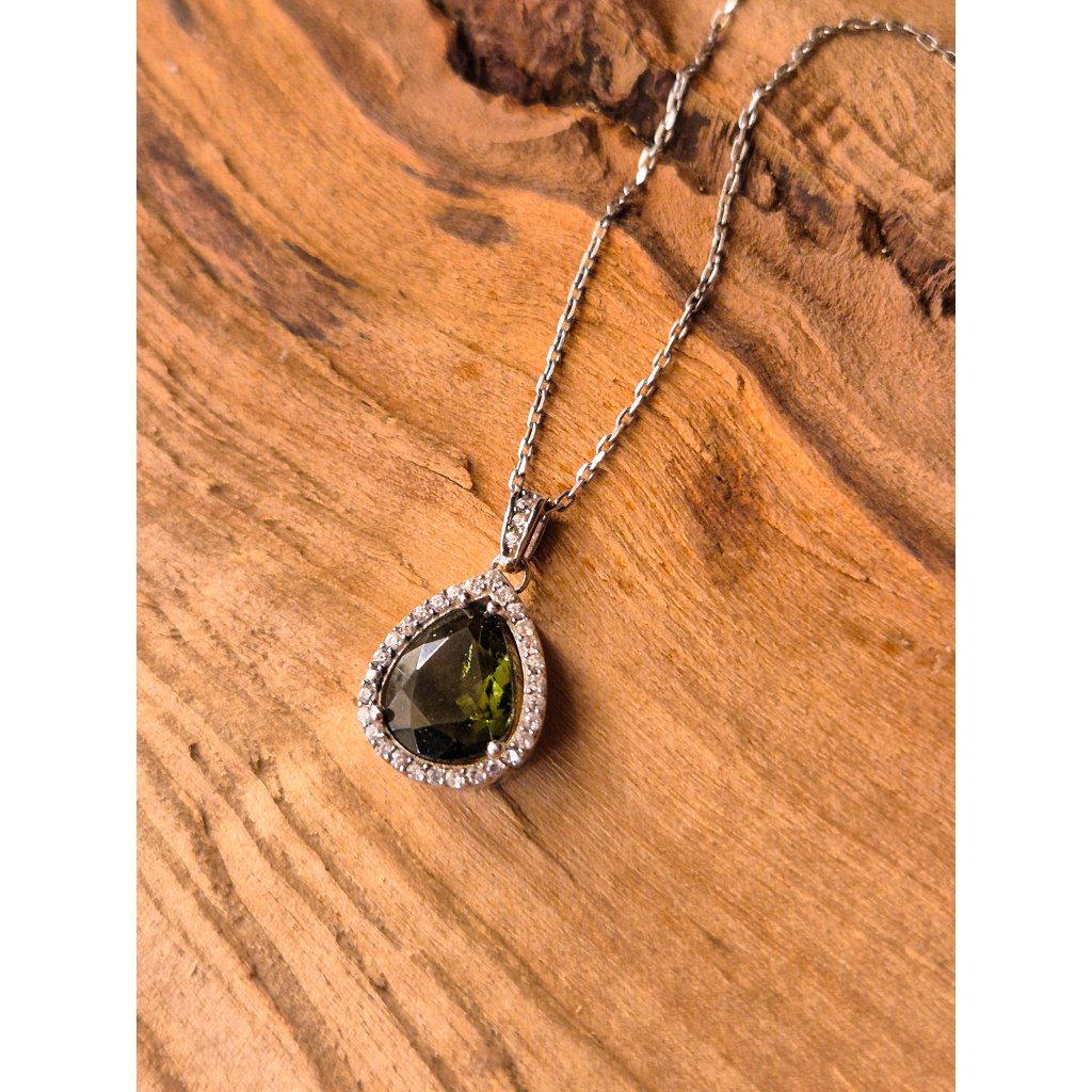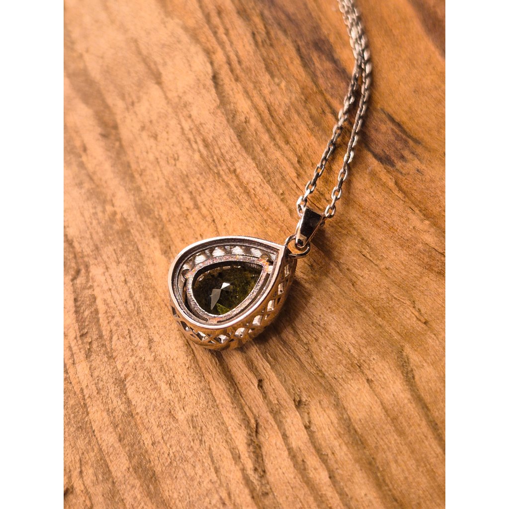 Stříbrný náhrdelník s vltavínem a zirkony P2000364990007