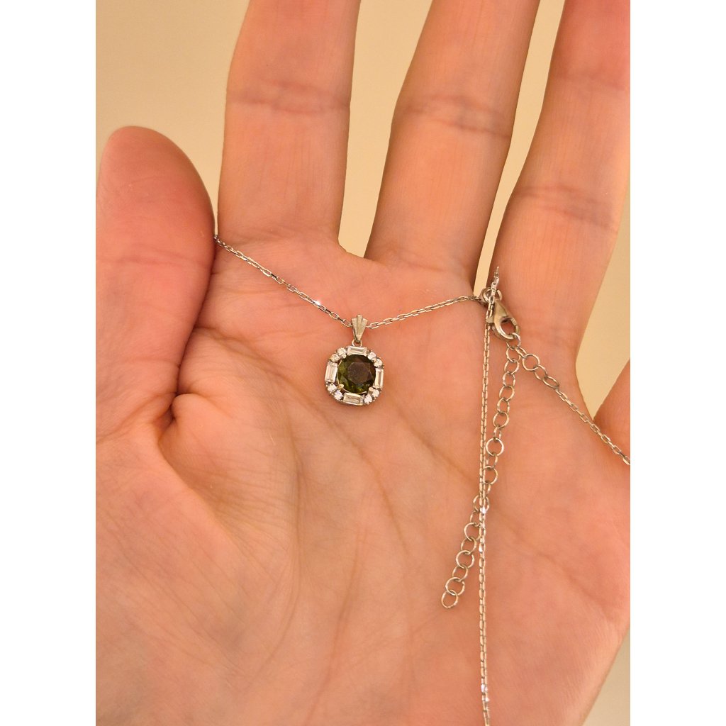 Zirkony kolem kamene podtrhují jeho zelený odstín a čistotu. Tento šperk je ideální volbou pro všední i slavnostní dny.