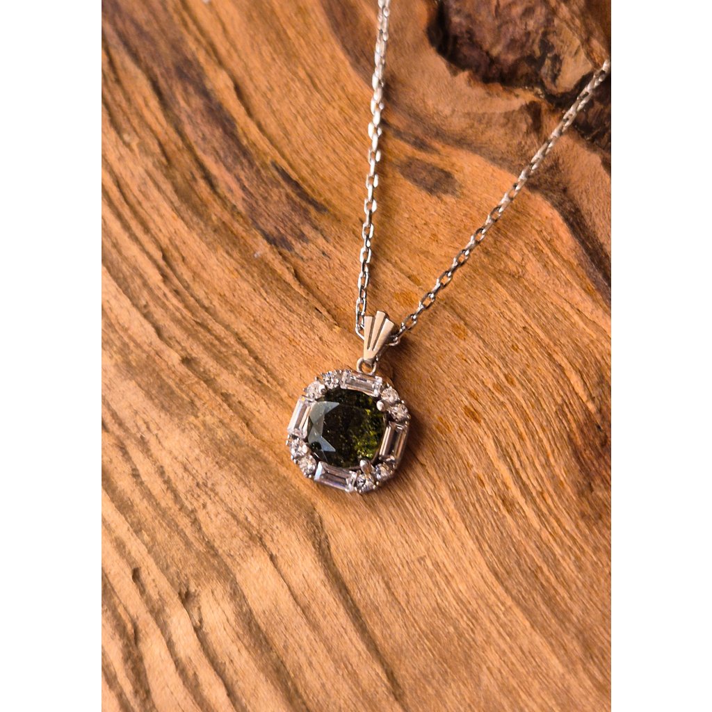 Stříbrný náhrdelník s vltavínem a zirkony P2000373020009/2