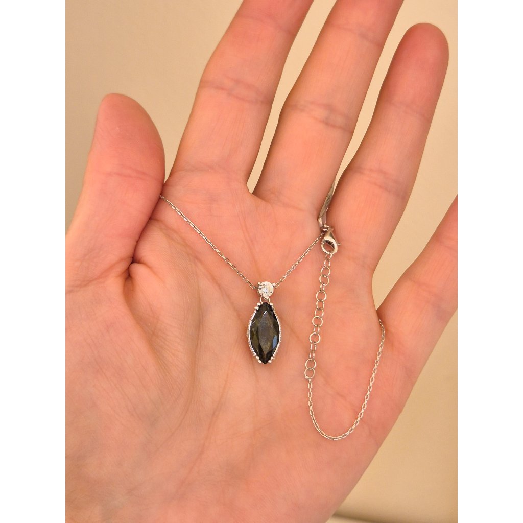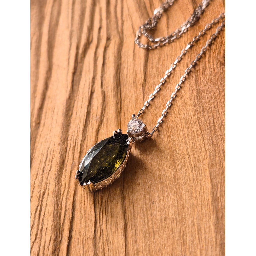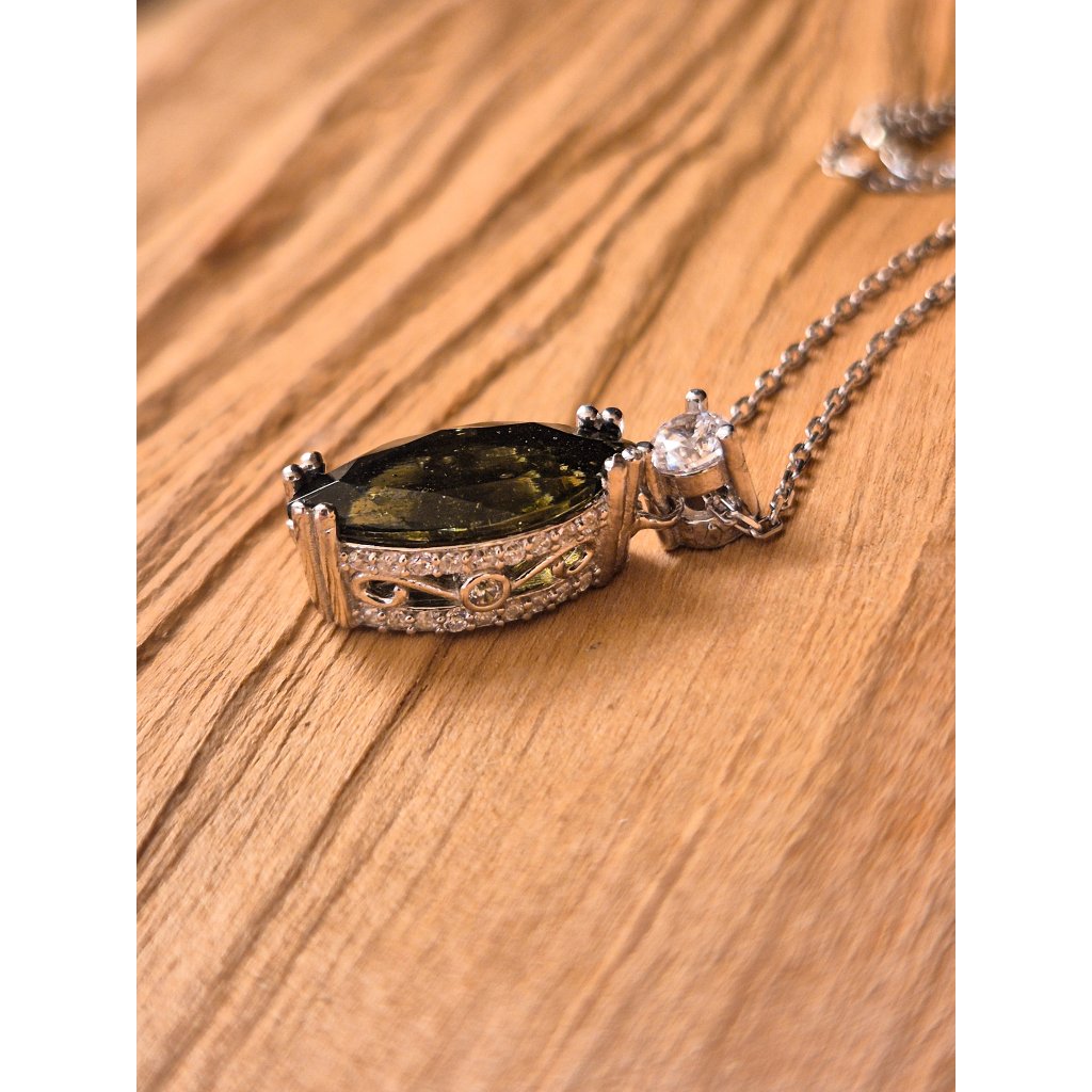 Stříbrný náhrdelník s vltavínem a zirkony P2000373030008