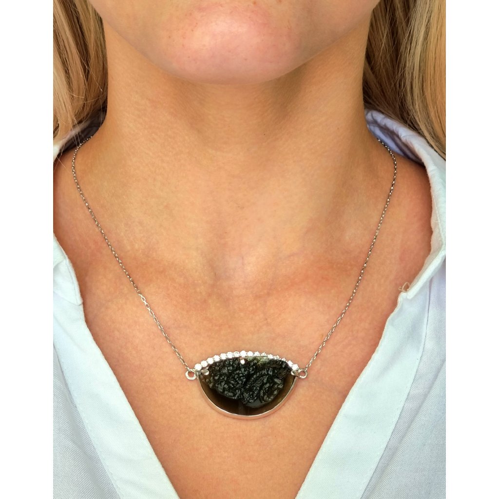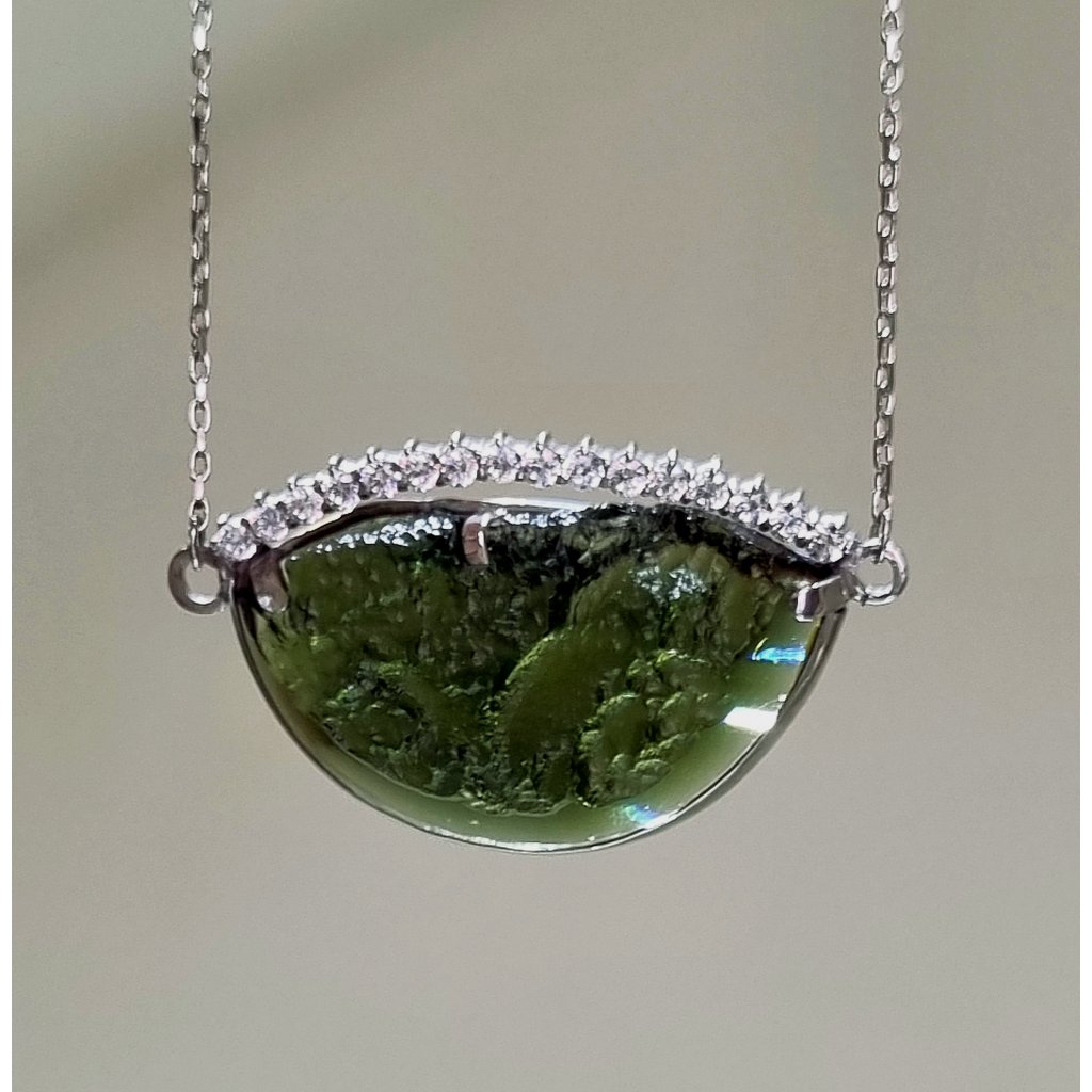 Stříbrný náhrdelník s vltavínem a zirkony P9 0011