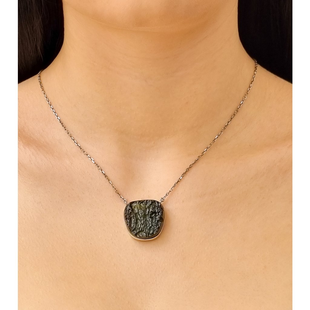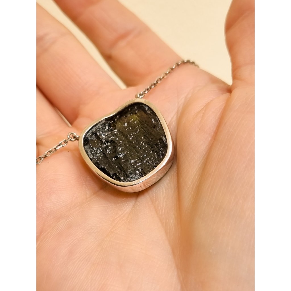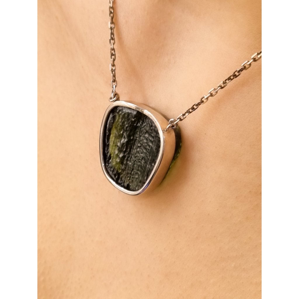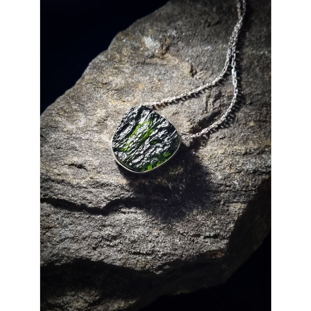 Stříbrný náhrdelník s vltavínem 39 0001