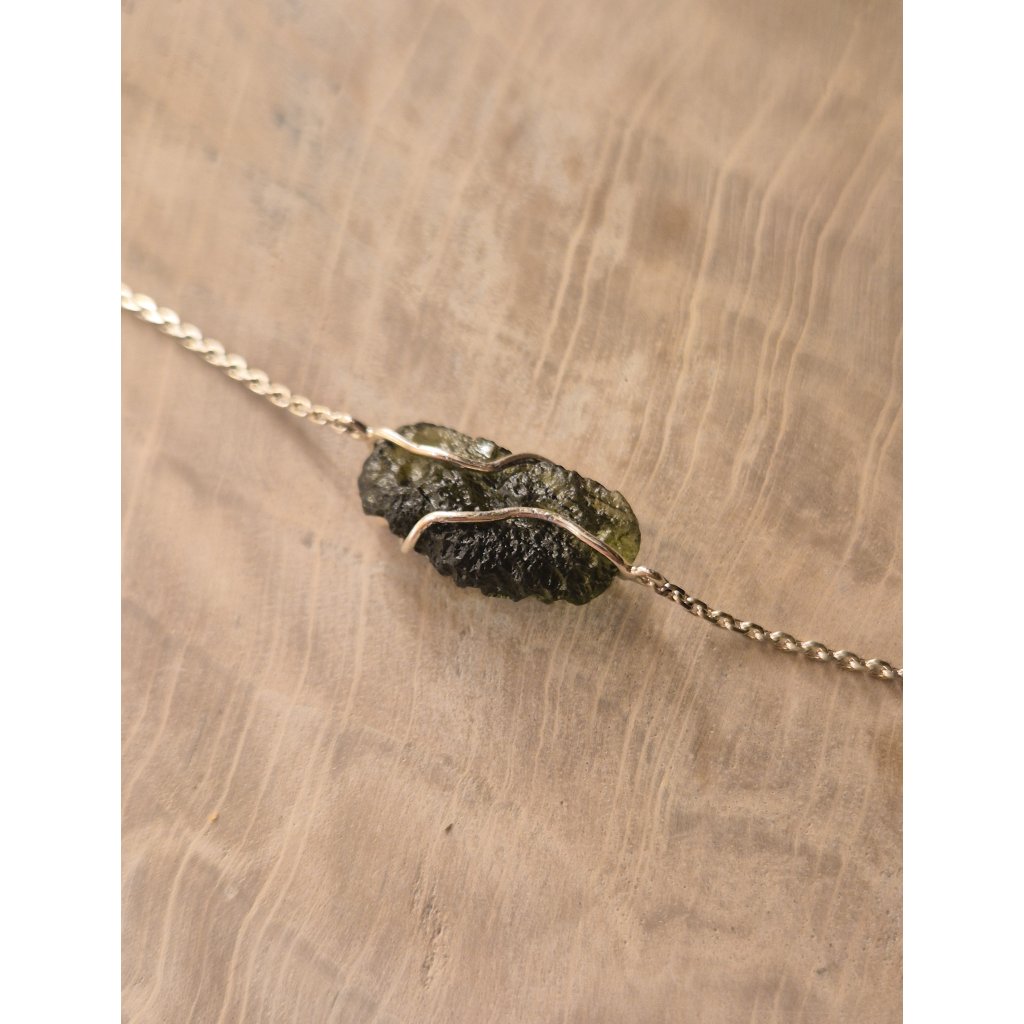 Tento náramek je jako kousek země přetvořený do jemné elegance. Vltavín přináší energii přírody, stříbro čistotu a světlo.