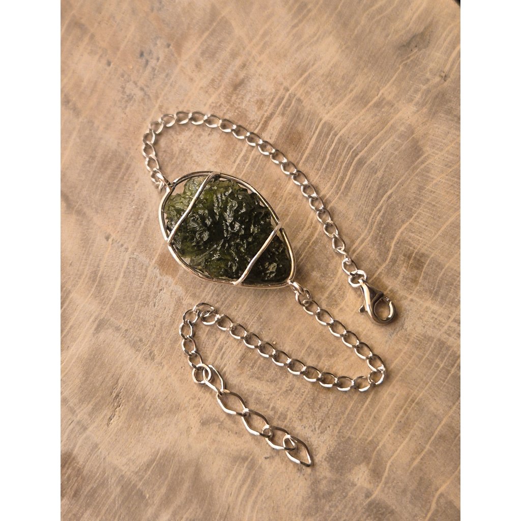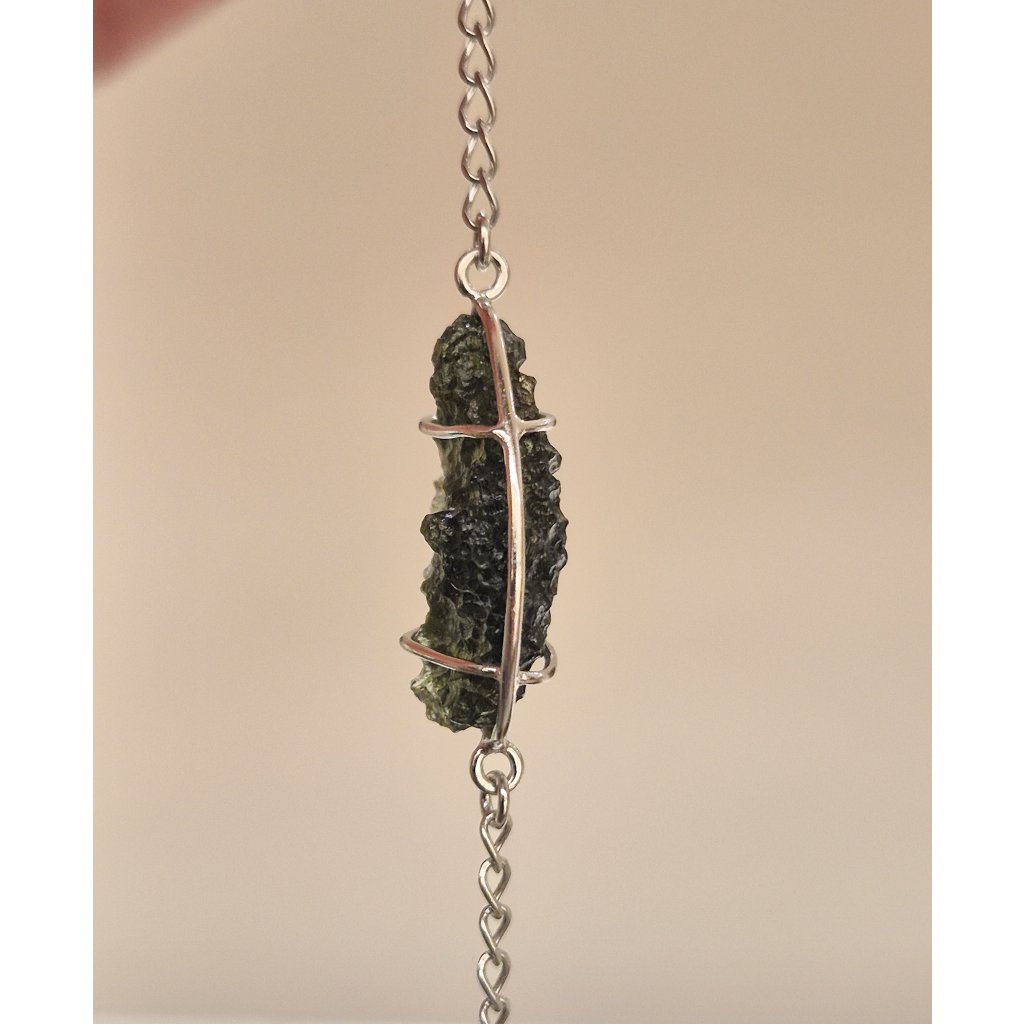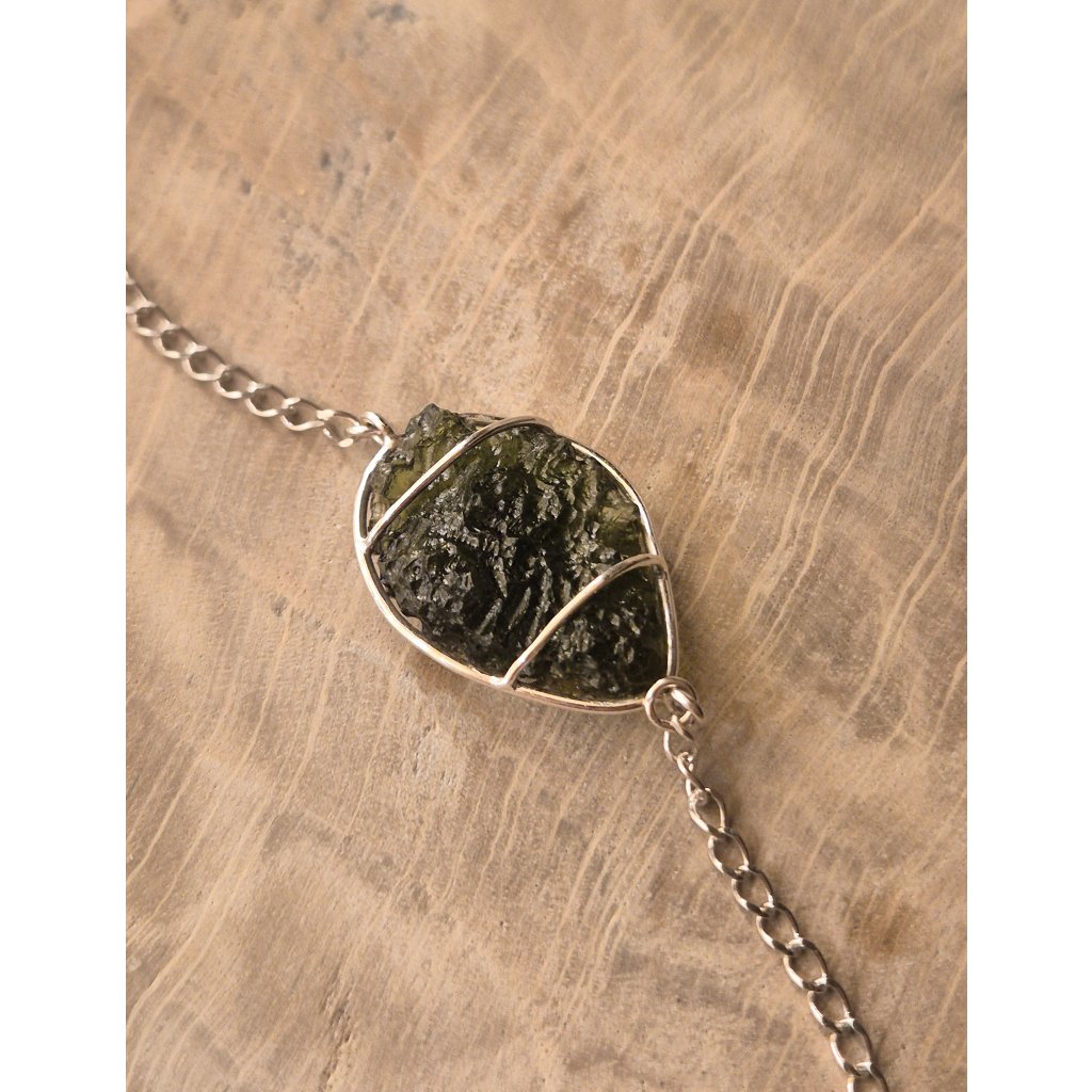 Tento šperk v sobě nese klid, energii i krásu země. Neopracovaný vltavín zůstává autentický, zatímco stříbro mu dodává noblesu.