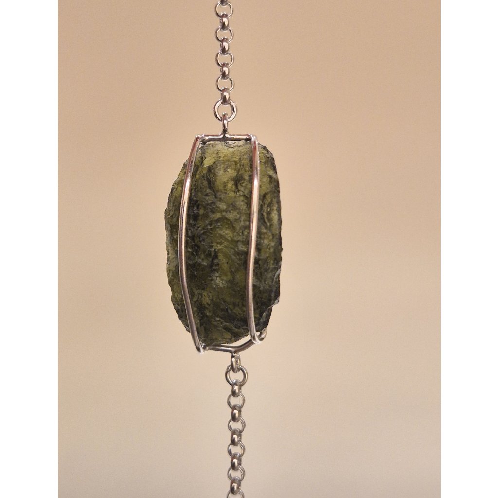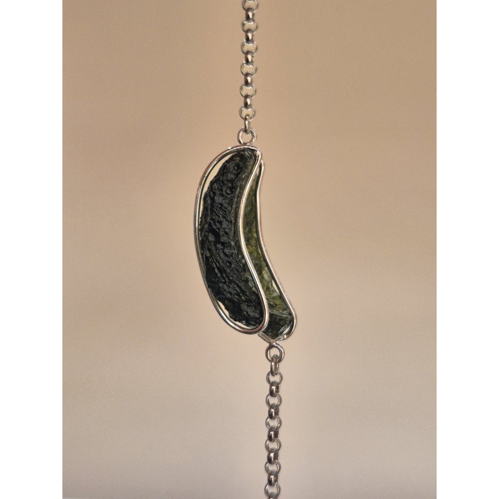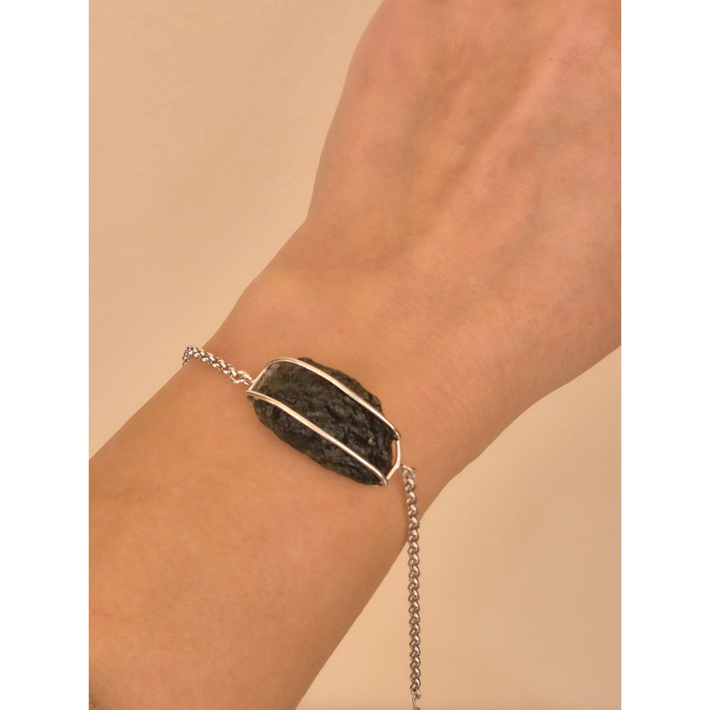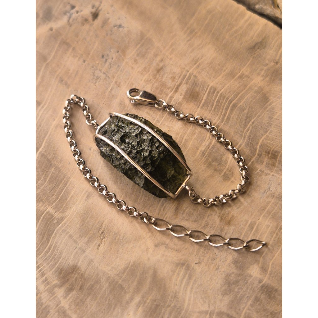 Stříbrný náramek s neopracovaným vltavínem spojuje surovou krásu přírody s jemností ručního zpracování. Každý kámen je originál, stejně jako Vy.