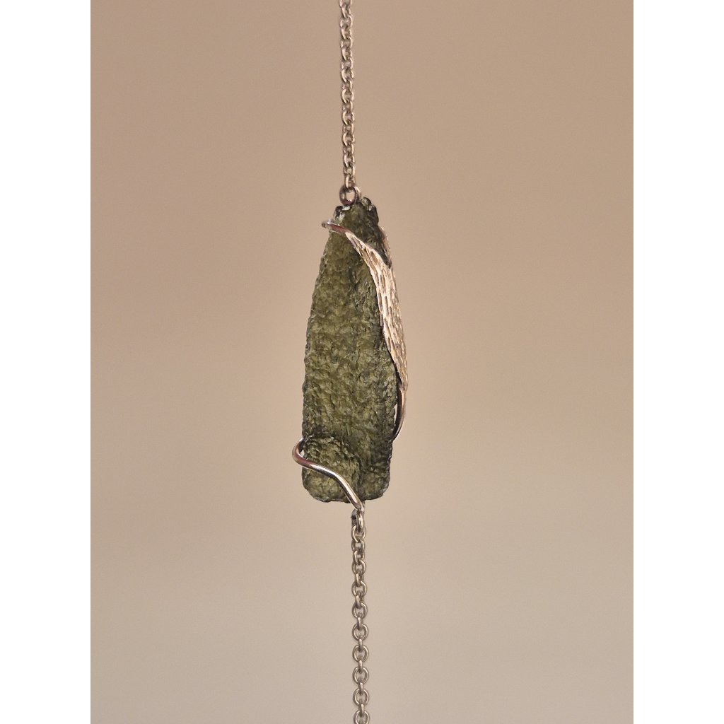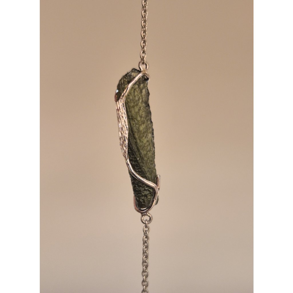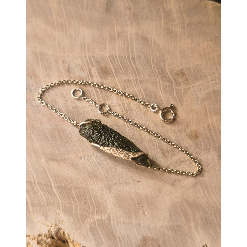 Tento náramek je symbolem jednoduchosti a síly. Vltavín zklidňuje, stříbro chrání a dohromady tvoří dokonalý talisman pro každý den.