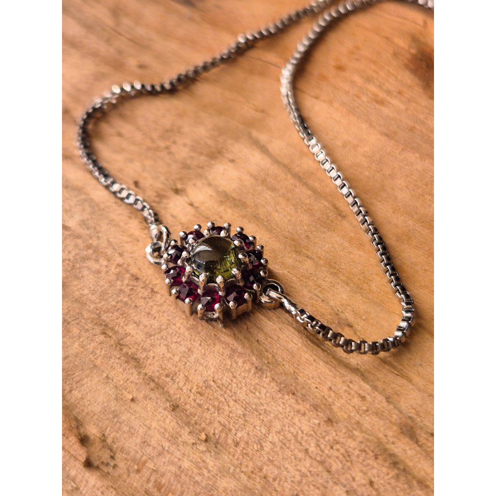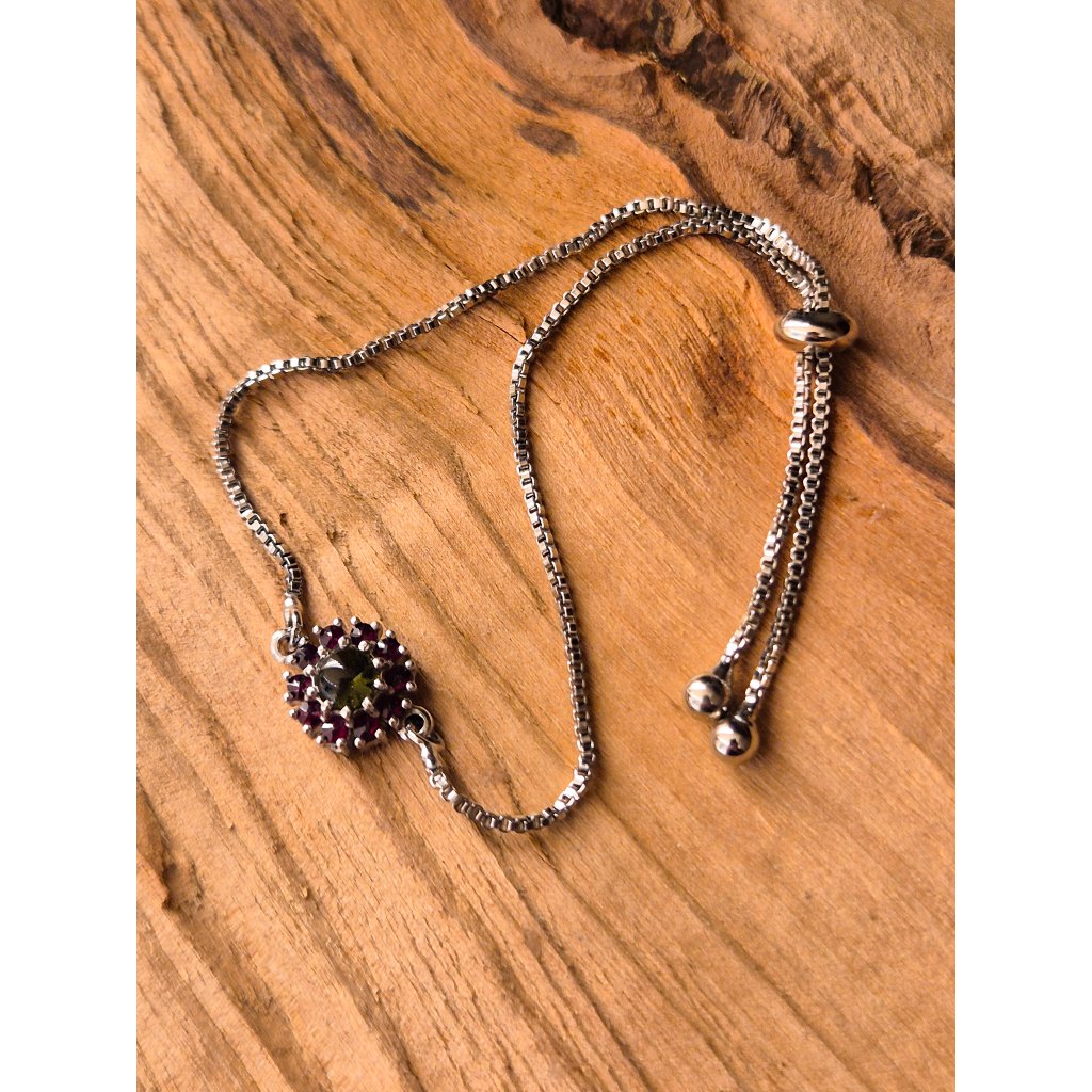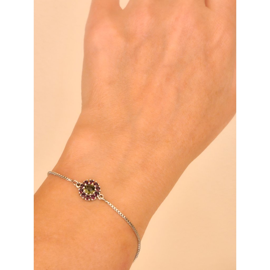 Stříbrný náramek s vltavíny a granáty P2000372810007